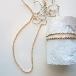 Die neue Kollektion ‚exclusive line‘ habe ich entwickelt, um neben den sonst verarbeiteten hochwertigen MIYUKI Glasperlen auch noch eine Schmuckkollektion mit besonderen Edelmetallen, Edelsteinen bzw. Süßwasserperlen und den exclusiven MIYUKI Perlen (z.B. in plated 24KT Gold, Silber, galvanisiert) zu kreieren.