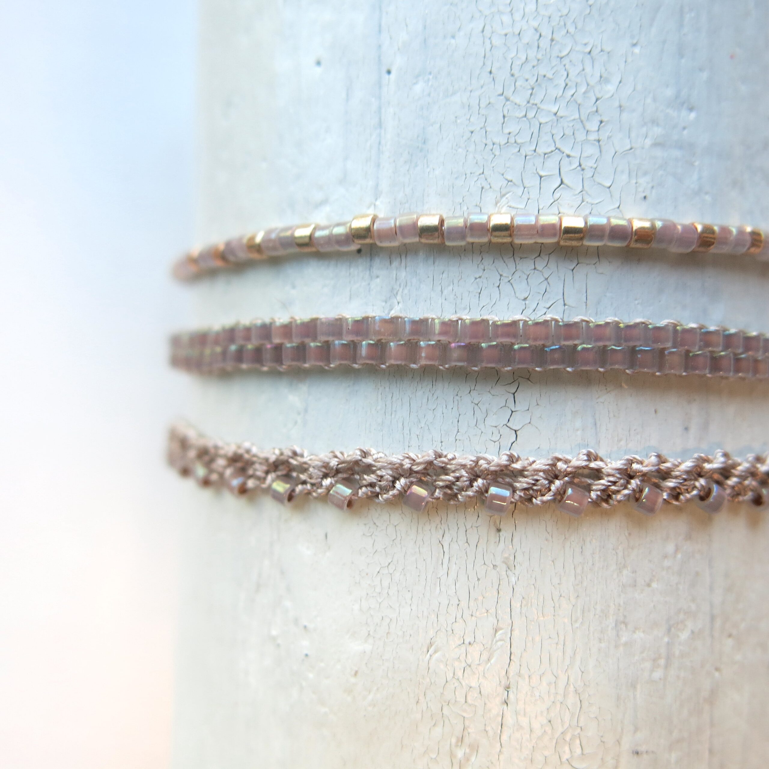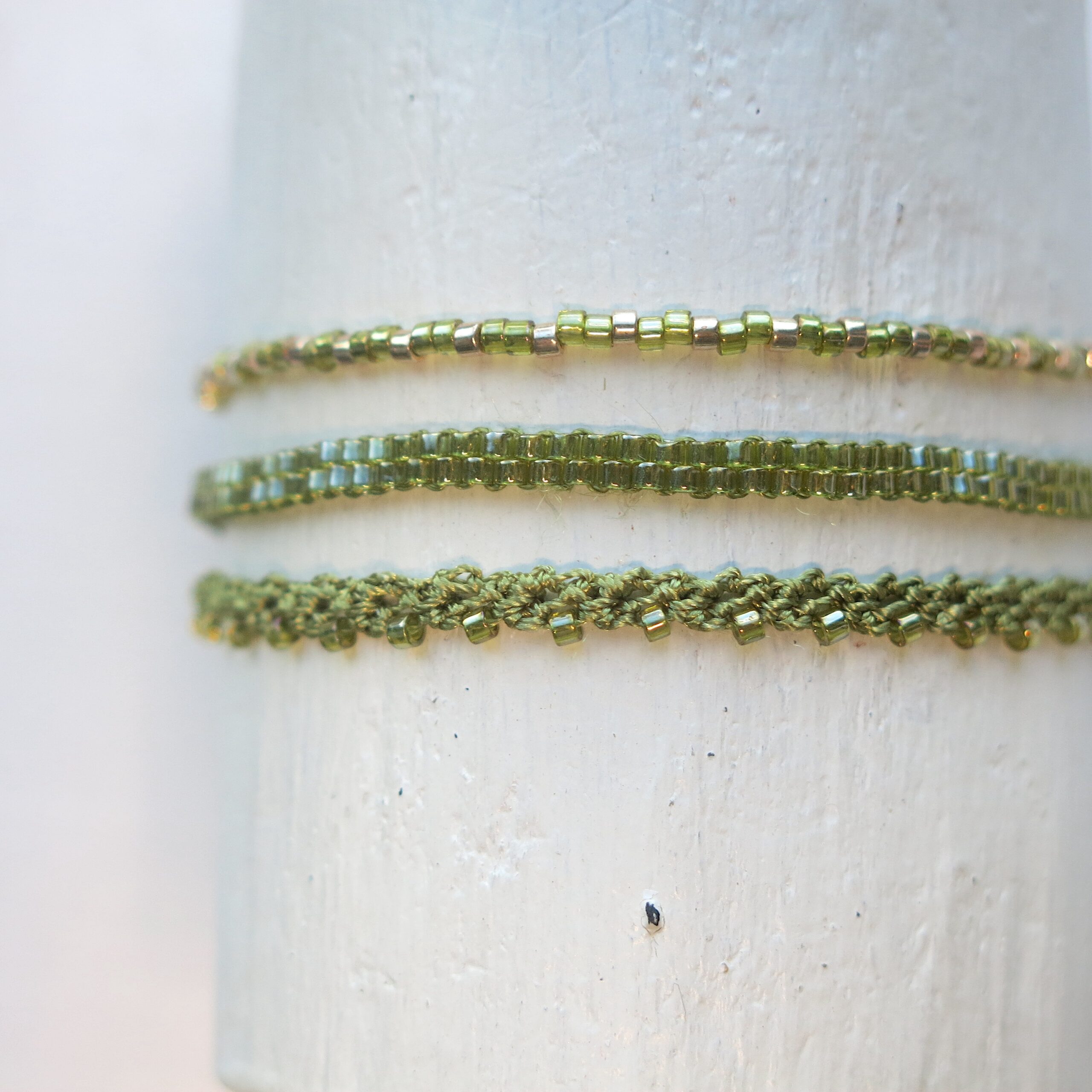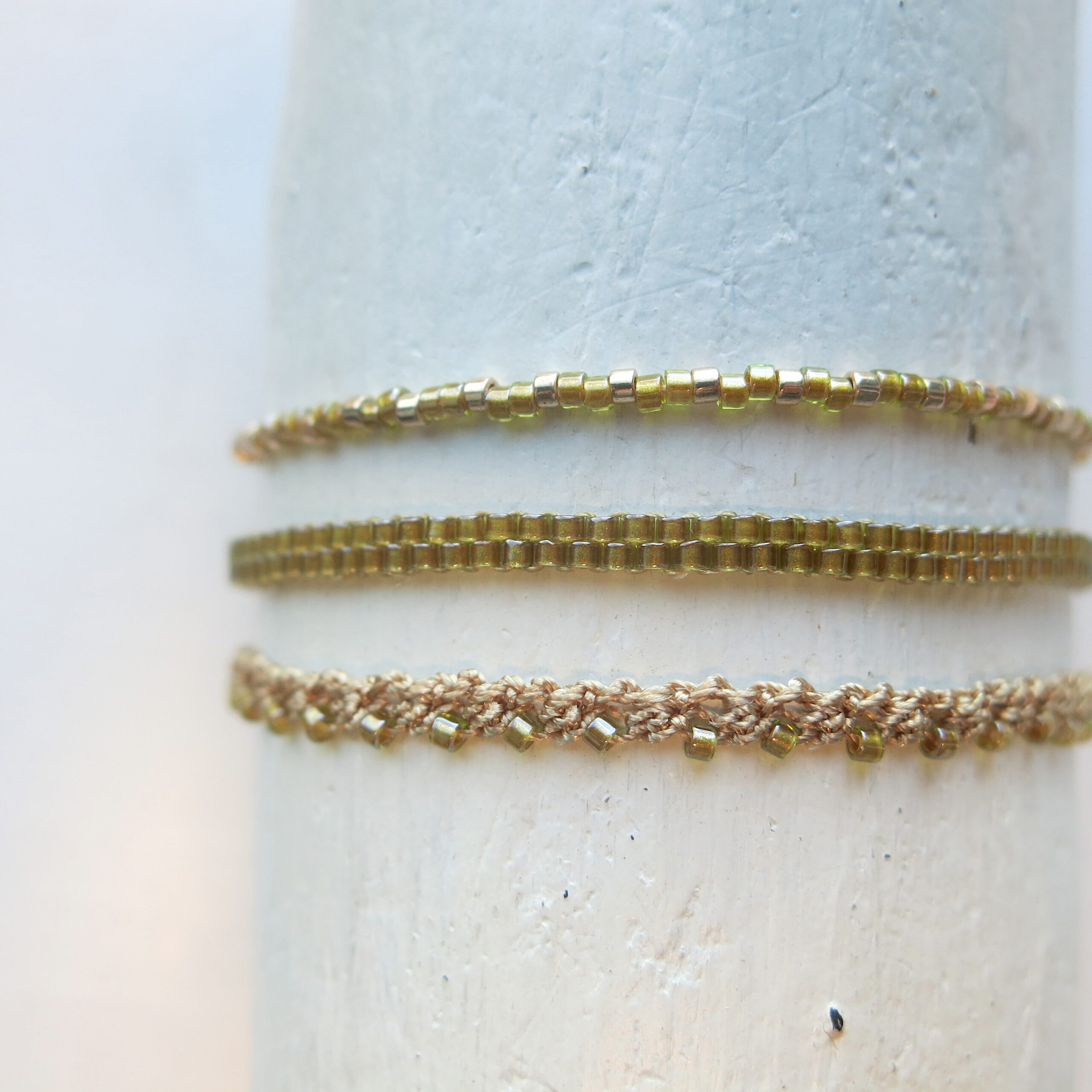 Die Armbänder sind so leicht, dass man Sie immer tragen kann. Selbst zum Duschen, Baden können Sie sie anlassen. Die hochwertigen MIYUKI Perlen und das feine Polyester Garn sind sehr beständig.