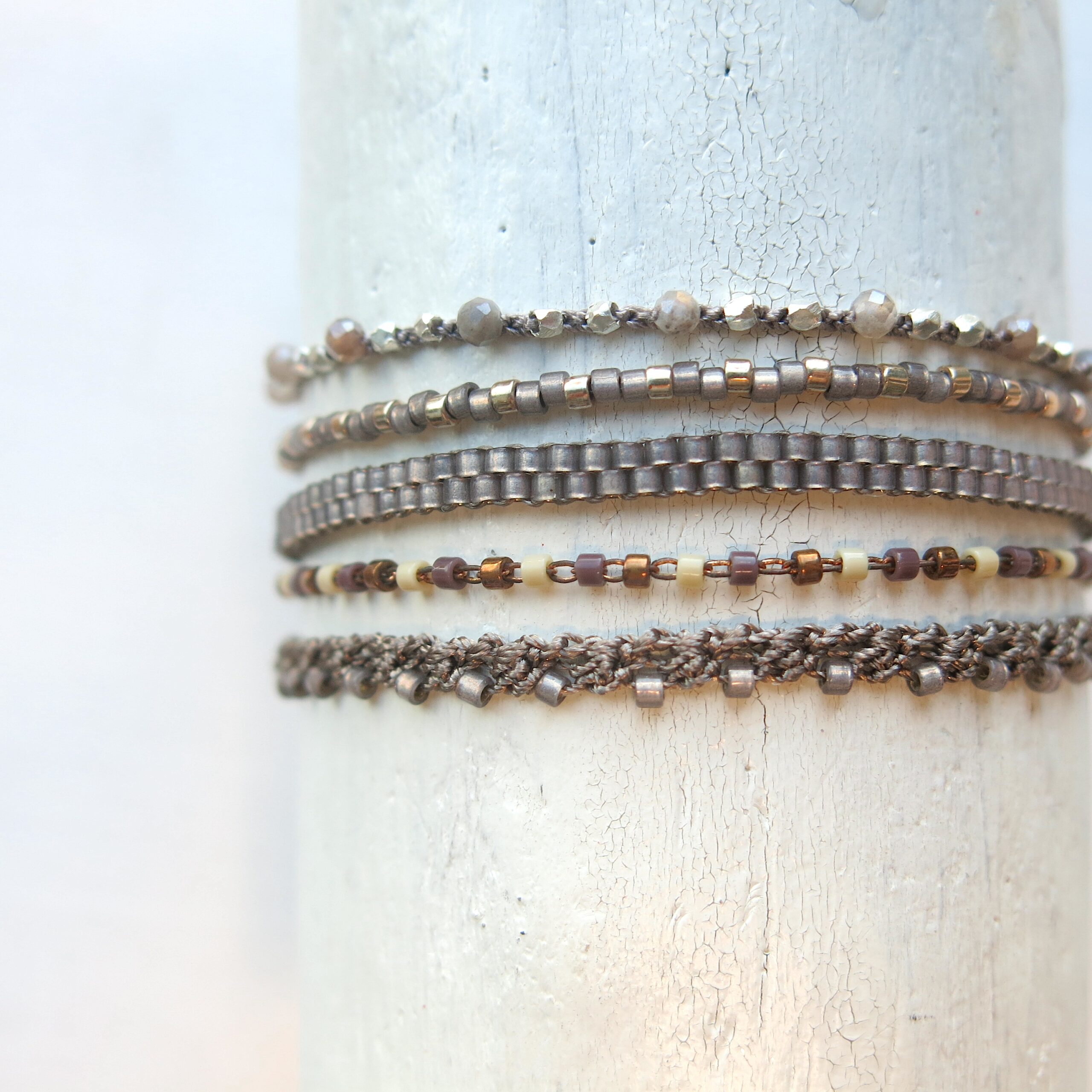 Die Accessoires wirken auf den ersten Blick eher ’schlicht‘ – beim näheren Hinschauen erkennt man die filigrane und aufwendige Handarbeit. Trotzdem soll ‚der Look‘ eher schlicht und dezent sein. Ein Accessoire, welches man täglich tragen kann und was sich leicht kombinieren lässt. Die Armbänder aus der Kollektion lassen sich untereinander wundervoll zusammen stellen, aber auch in Kombination mit anderem Schmuck harmonisieren sie sehr schön.
