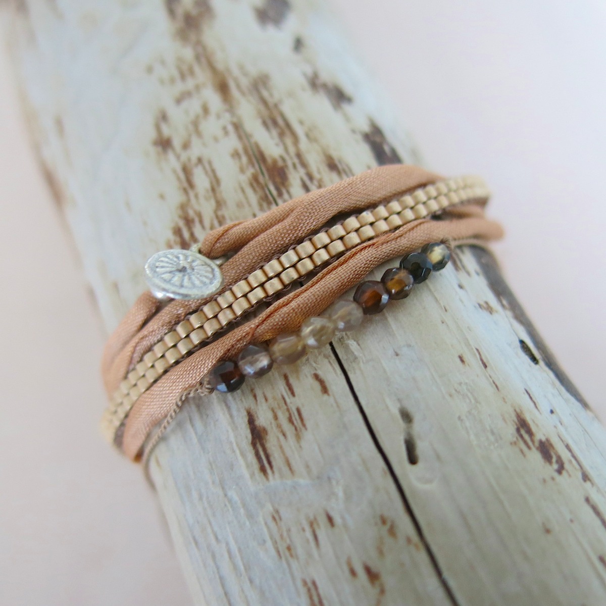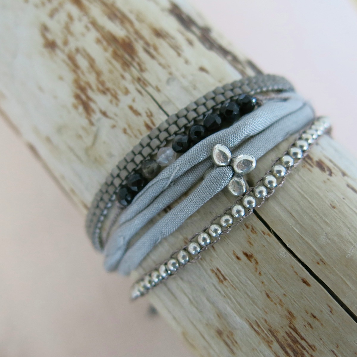 Seidenarmband mit Silberplättchen