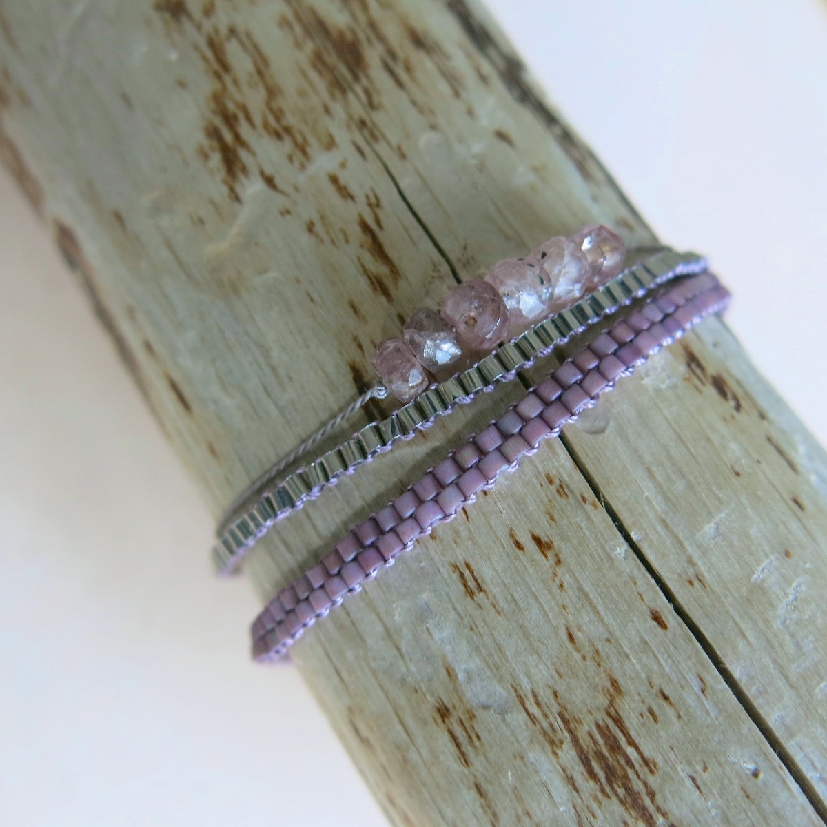 Armband ‚Maelys‘ ist eine Kombination aus ‚peyote- und crochet-Technik‘. Die feinen japanischen Glasperlchen in ihrer eher matten Farbgebung erzeugen einen edlen dezenten look.