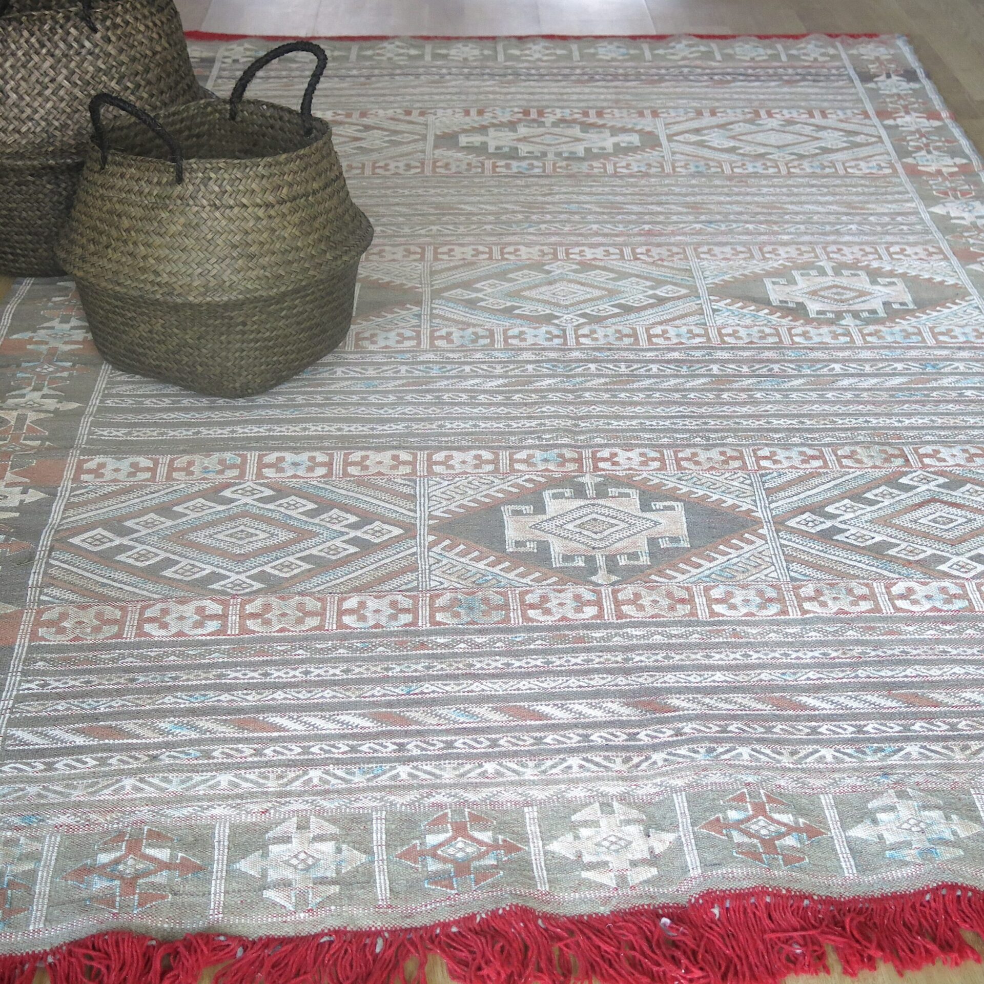 Berber Kelim Teppich olivgrau-terracotta – Marokko