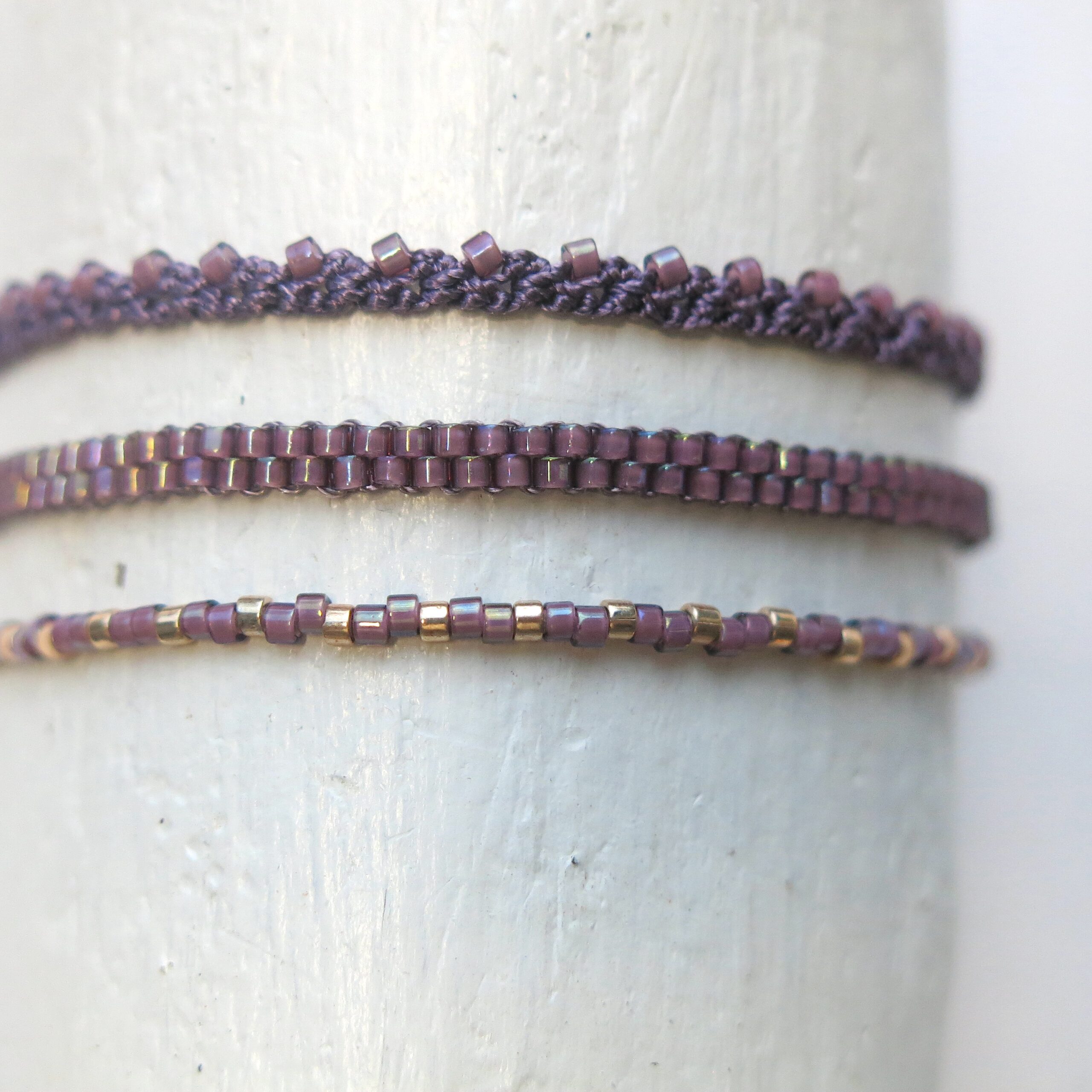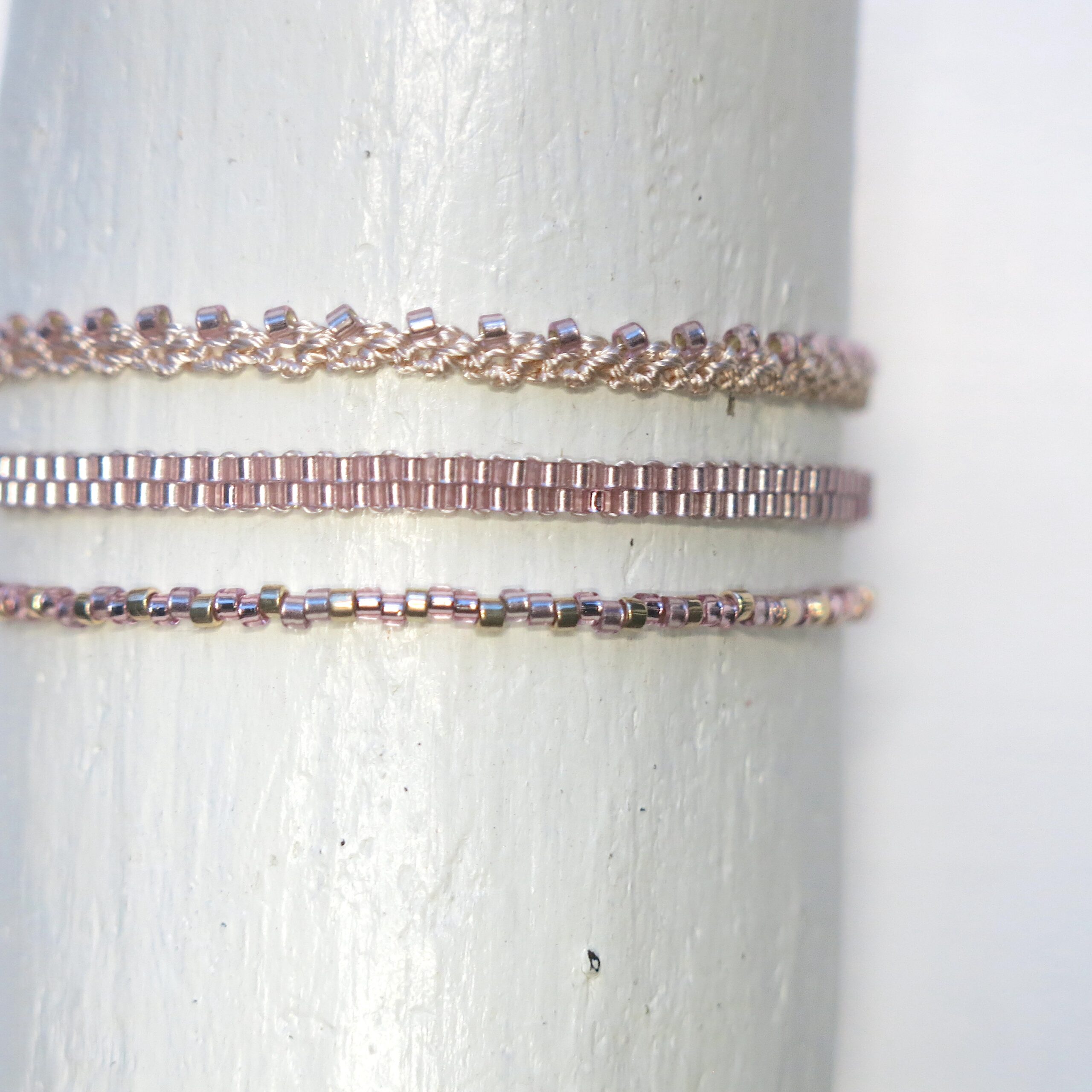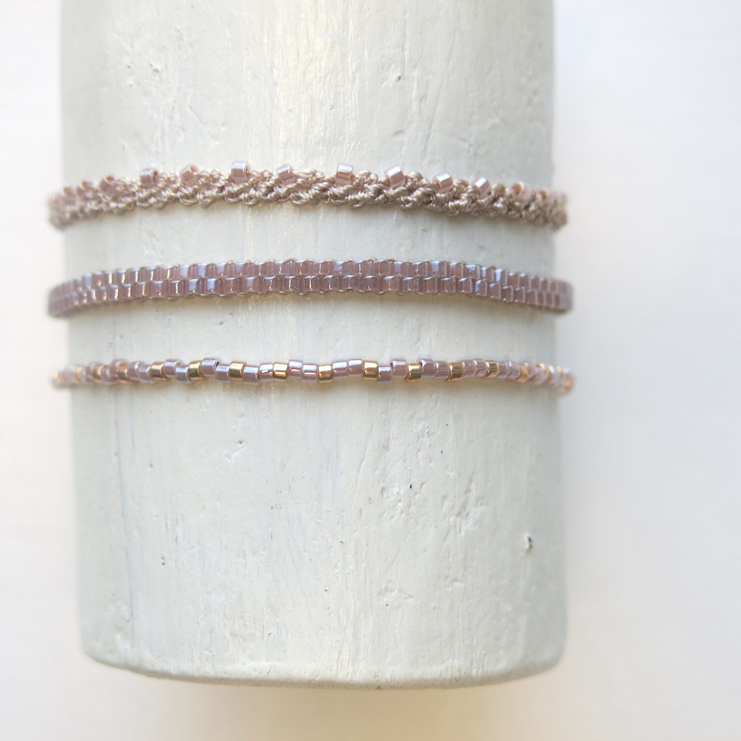 Die Armbänder sind so leicht, dass man Sie immer tragen kann. Selbst zum Duschen, Baden können Sie sie anlassen. Die hochwertigen MIYUKI Perlen und das feine Polyester Garn sind sehr beständig.