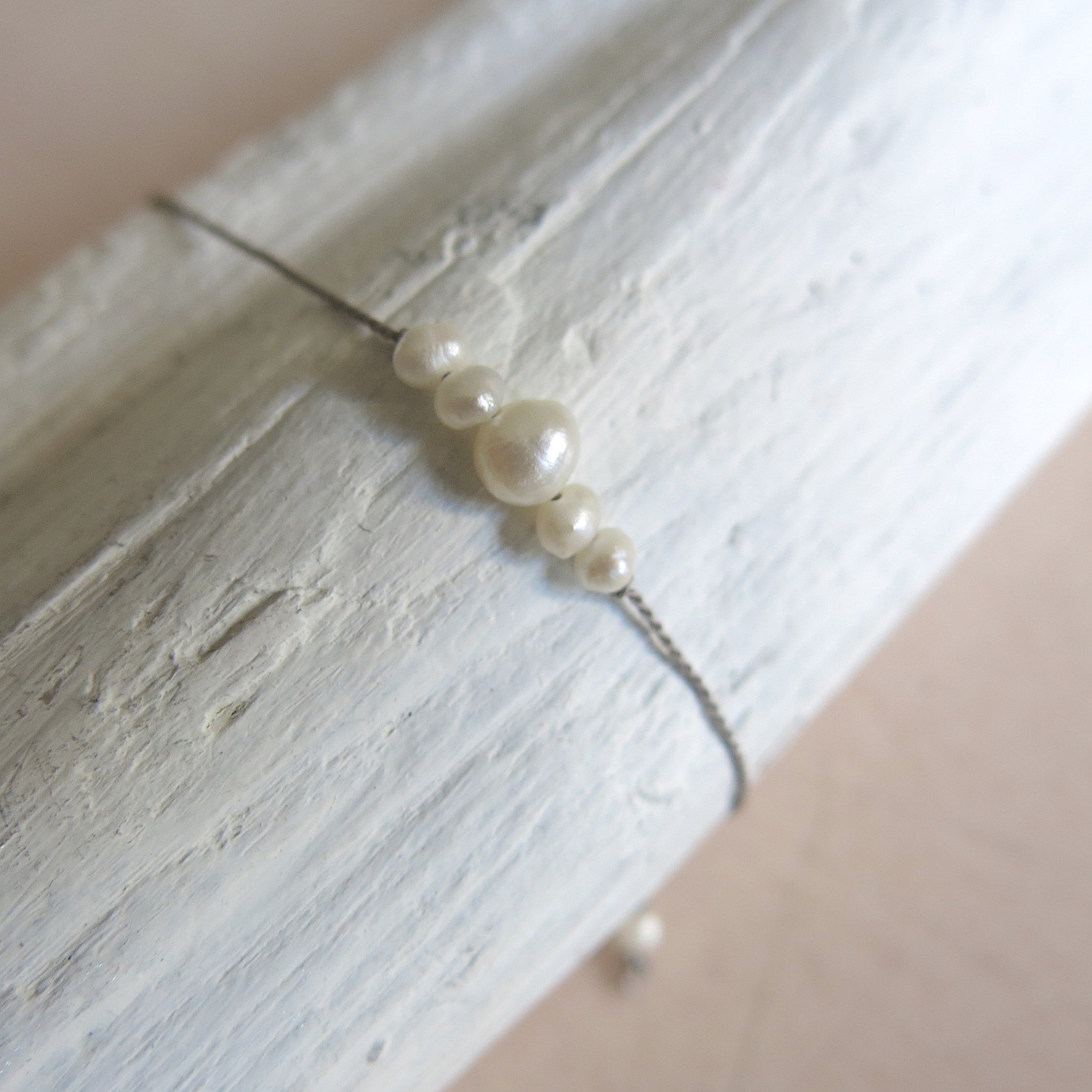 Die Süßwasserperle ist ein ‚Heilstein‘ und soll einem Kraft und Stärke verleihen. Dieses Armband besteht aus feinen, in der Form naturbelassenen cremefarbenen Keshi Perlen und einer größeren Süßwasserperle in der Mitte. Garnfarbe ist grau.