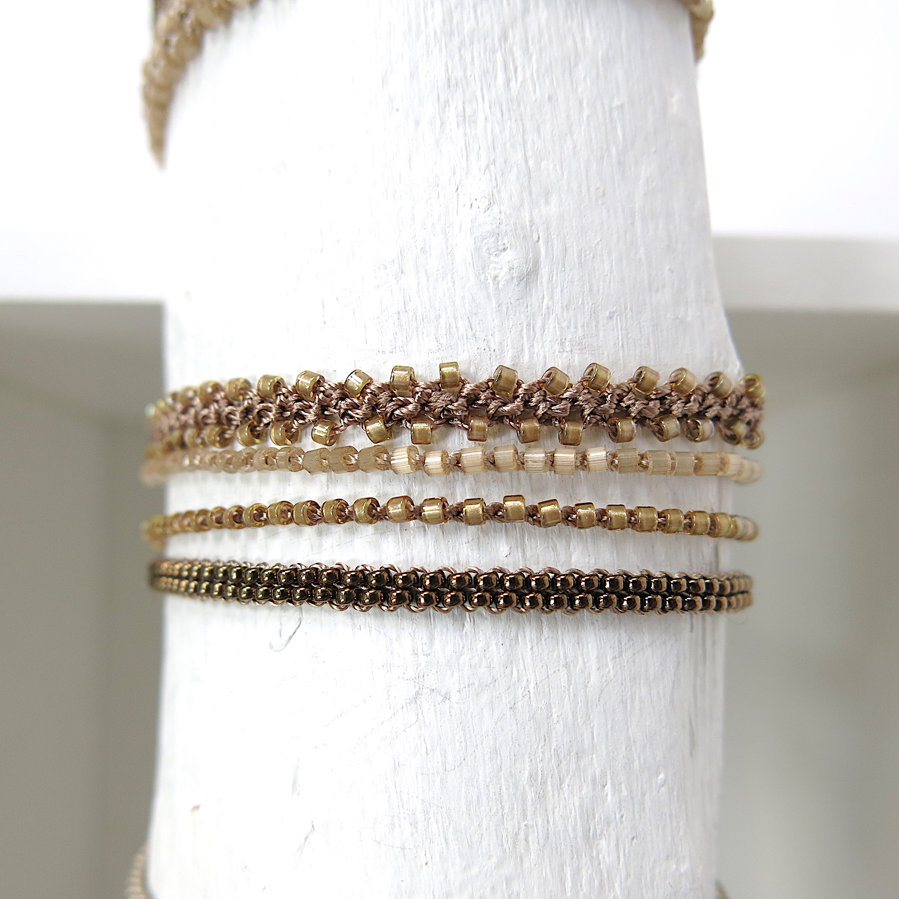 Die Accessoires wirken auf den ersten Blick eher ’schlicht‘ – beim näheren Hinschauen erkennt man die filigrane und aufwendige Handarbeit. Trotzdem soll ‚der Look‘ eher schlicht und dezent sein. Ein Accessoire, welches man täglich tragen kann und was sich leicht kombinieren lässt. Die Armbänder aus der Kollektion lassen sich untereinander wundervoll zusammen stellen, aber auch in Kombination mit anderem Schmuck harmonisieren sie sehr schön.
