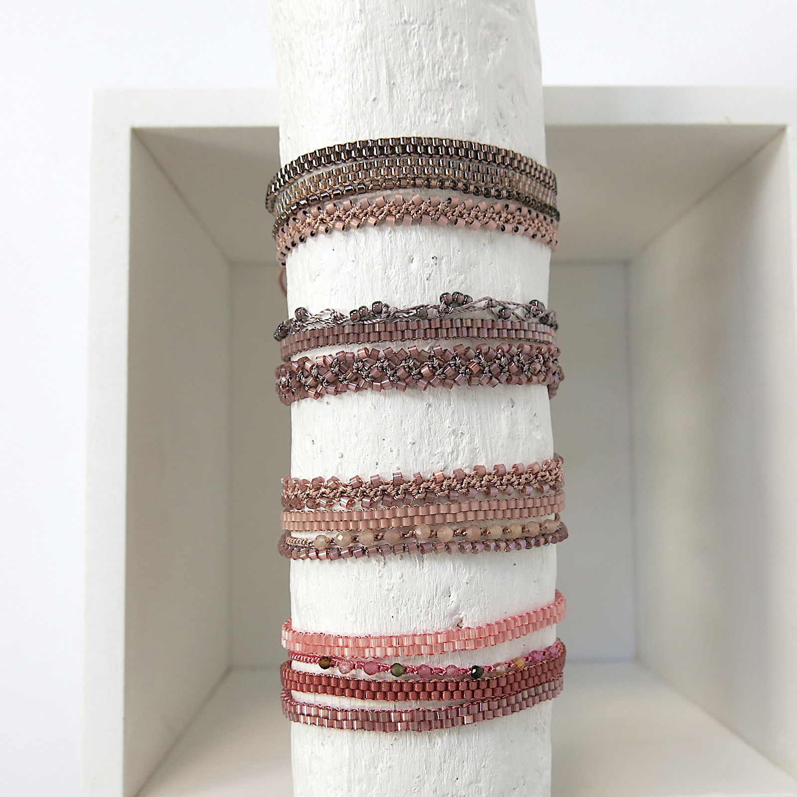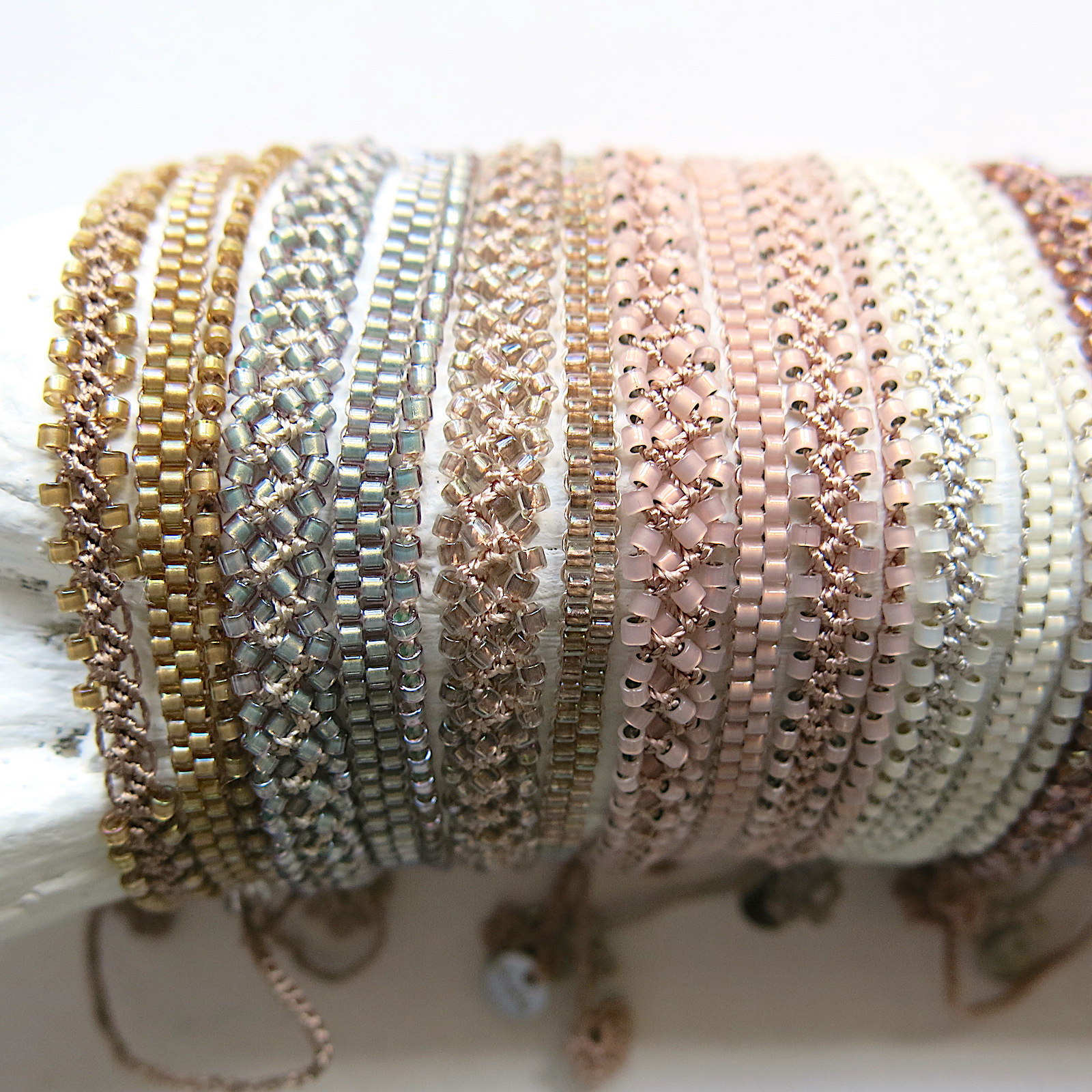 Unser feines Häkel Armband in Pastelltönen, die soft schimmern