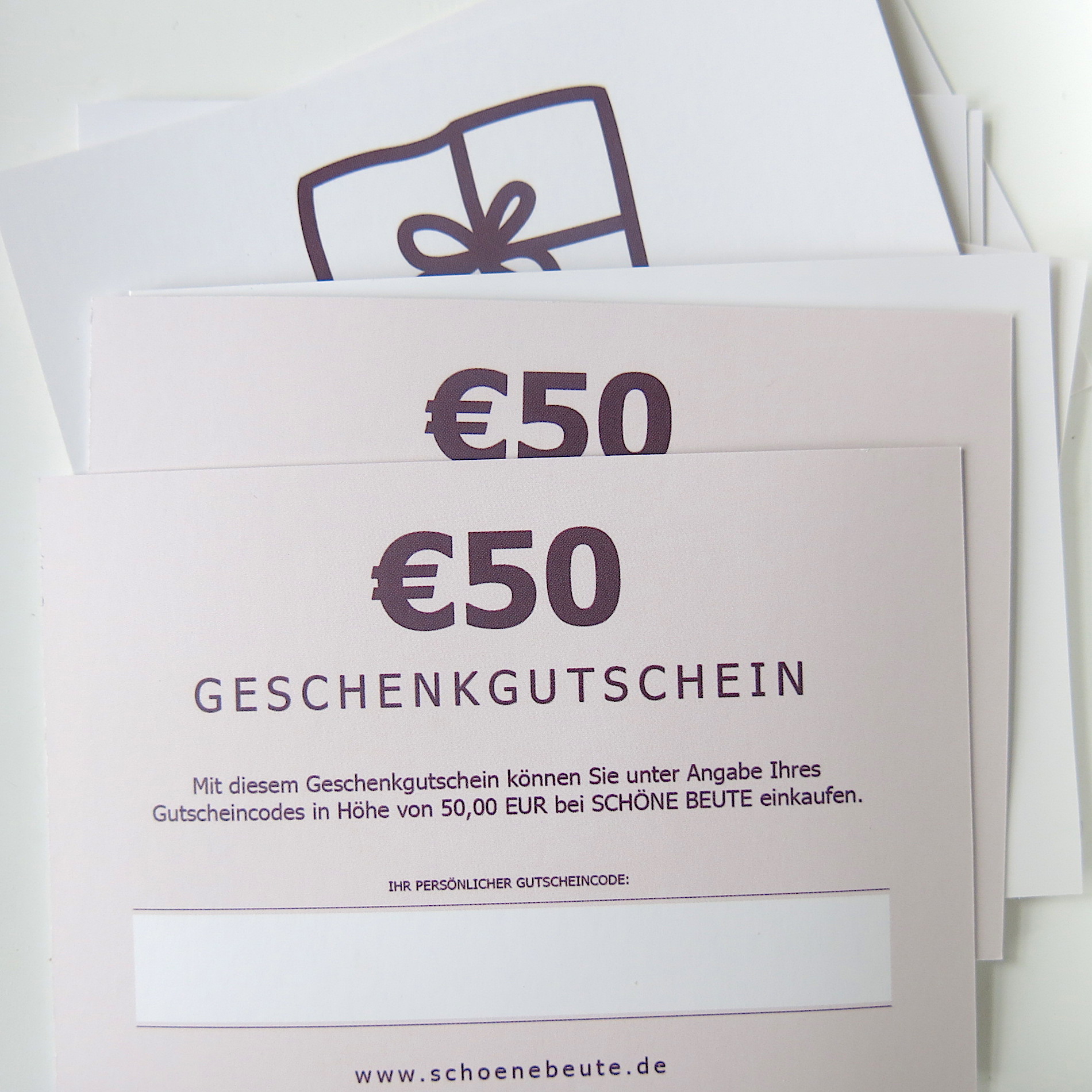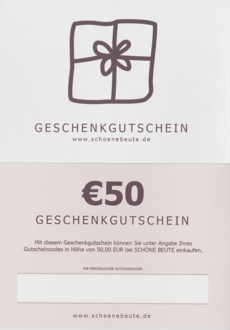 Geschenkgutscheine von SCHÖNE BEUTE : Sie sind auf der Suche nach einem passenden Geschenk zum Geburtstag, zu Weihnachten, oder zu einem anderen Anlass? Schenken Sie einen Gutschein von SCHÖNE BEUTE im Wert von 20€, 50€, 100€ oder 200€ und machen Sie damit eine Freude! Die/ Der Beschenkte kann selber im Shop auswählen, was am Besten gefällt.