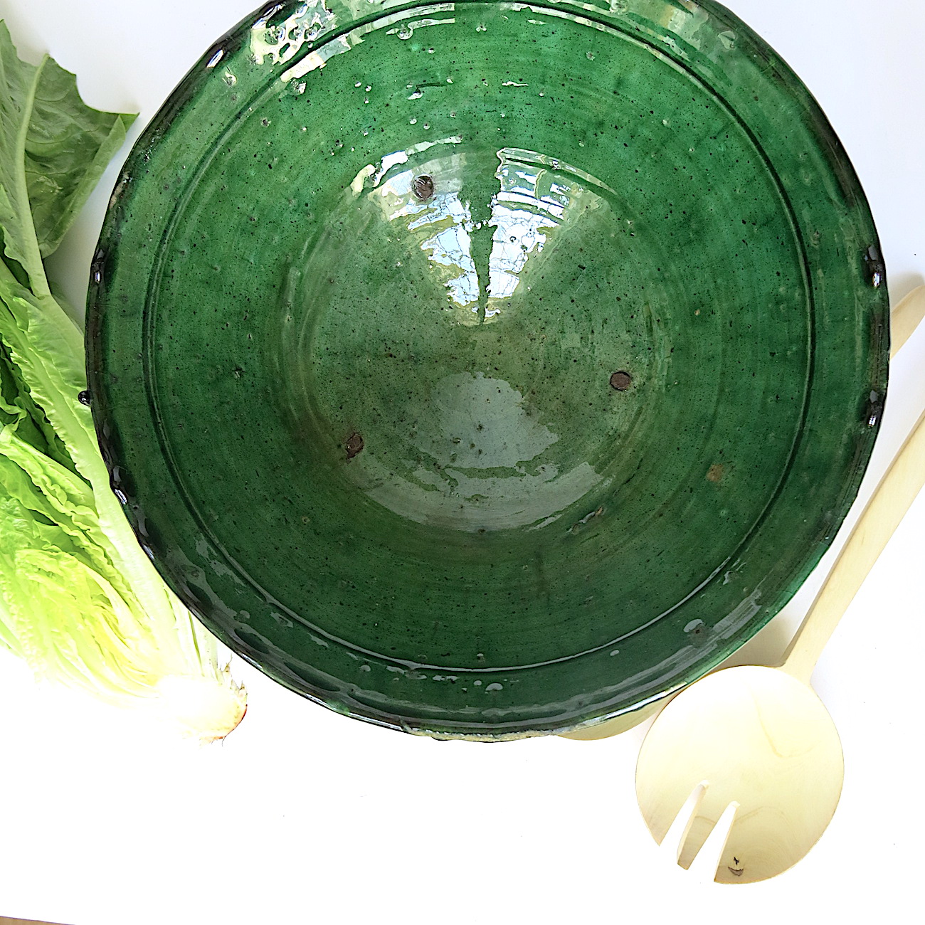 Diese einzigartige grüne Keramik kommt aus dem Süden Marokkos – Tamegroute: besonders an dieser Tonware ist ihre grüne Farbe bzw. Glasur. Die Glasur besteht aus verschiedenen im Boden der Region vorkommenden Mineralien – unter anderem Kupferoxid. Erst beim Brennvorgang bei über 900 Grad entsteht dieser wunderschöne Grünton in zahlreichen Varianten. Der Farbton geht von ‚Flaschengrün‘ bis zu oliv Farbnuancen. So ist jedes Stück ein Unikat.