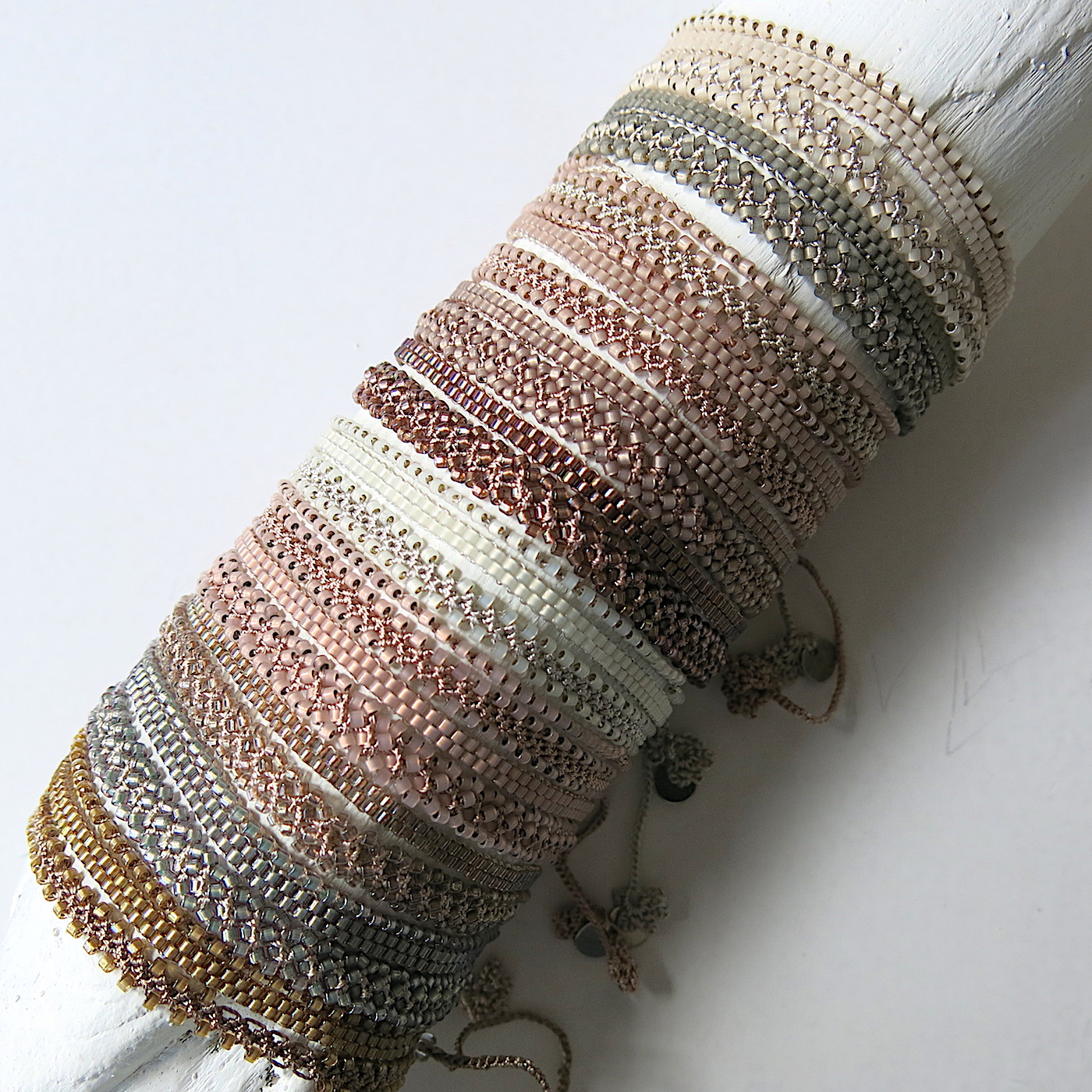 Modell ‚Joelia‘ ist ein einreihiges, feines Häkel-Armband, bei dem die Perlen obenauf liegen. Dieses Armband ist besonders schön in Kombination mit anderen feineren Armbändern oder den Seidenbändern – es gibt einfach nur einen kleinen ‚farblichen Schimmer-Effekt‘. Der wunderschön schimmernde look kommt durch die besonderen ‚MIYUKI Delica Perlen‘ in herbstlichen Pastelltönen. Sie haben einen wunderschönen soften Schimmer oder sind ‚leicht irisierend‘.