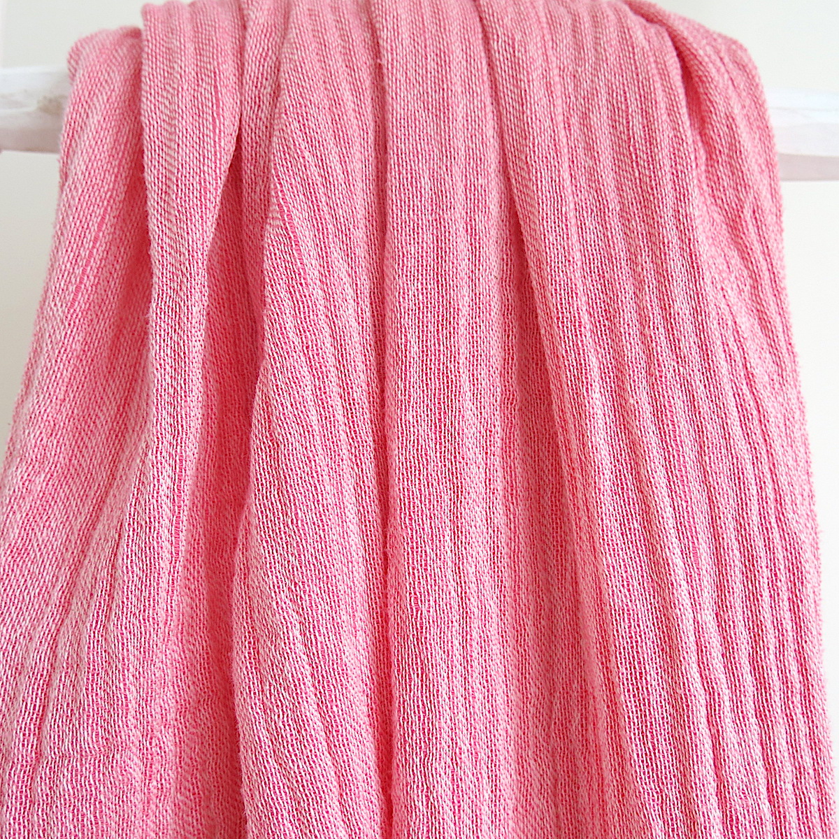 Bei einem meiner Weber in der Türkei entwickelt: Ein besonderes, edles Hamamtuch in feiner Baumwoll-Qualität, welches auf einem Jacquard Webstuhl gewebt wurde. Dadurch hat das Doppelgewebe mehr Volumen und ist besonders weich. Von der Struktur & Optik ist es eine Art ‚Musselin/ Gaze/ Mull‘ Textil. Die Zweifarbigkeit gibt dem feinen Gewebe noch seine besondere Optik – der Kett-Faden ist natur/ creme und der Schuss-Faden Pink, Farngrün, Blau, Beige oder Hellgrau.