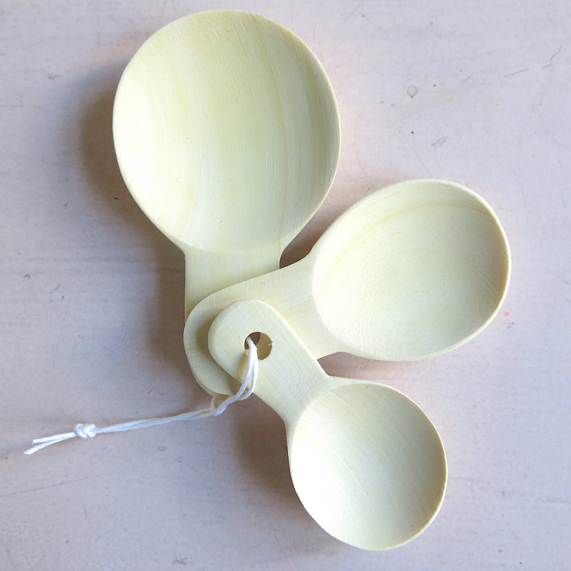 Dieses Löffel-Set besteht aus 3 Löffeln in gleicher Form in 3 verschiedenen Größen S/ M/ L. Die Löffel sind mit einem Band zum Set verbunden, können aber auch einzeln verwahrt bzw. genutzt werden. Die Löffelform eignet sich als Gewürz-/ Tee-/ Kaffee-Löffel (Größe S), für z.B. Zucker (Größe M) oder auch als Portionslöffel für Mehl, Müsli etc. (Größe L).