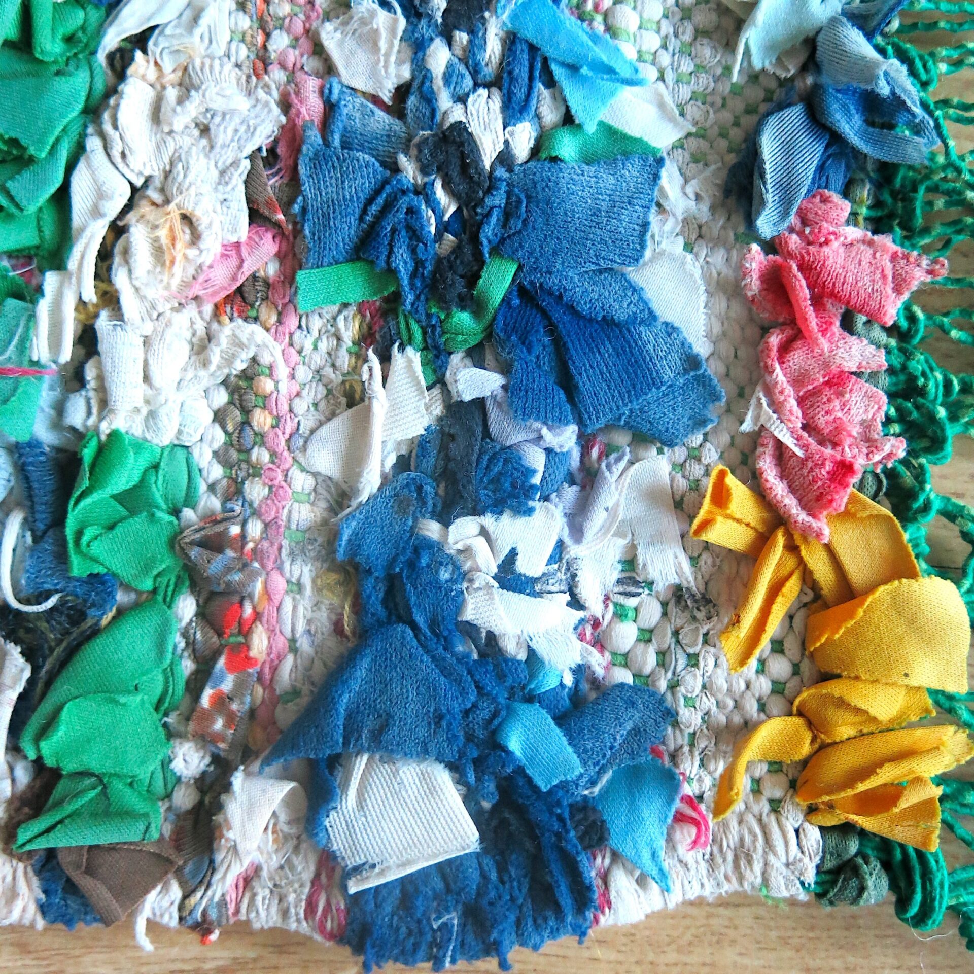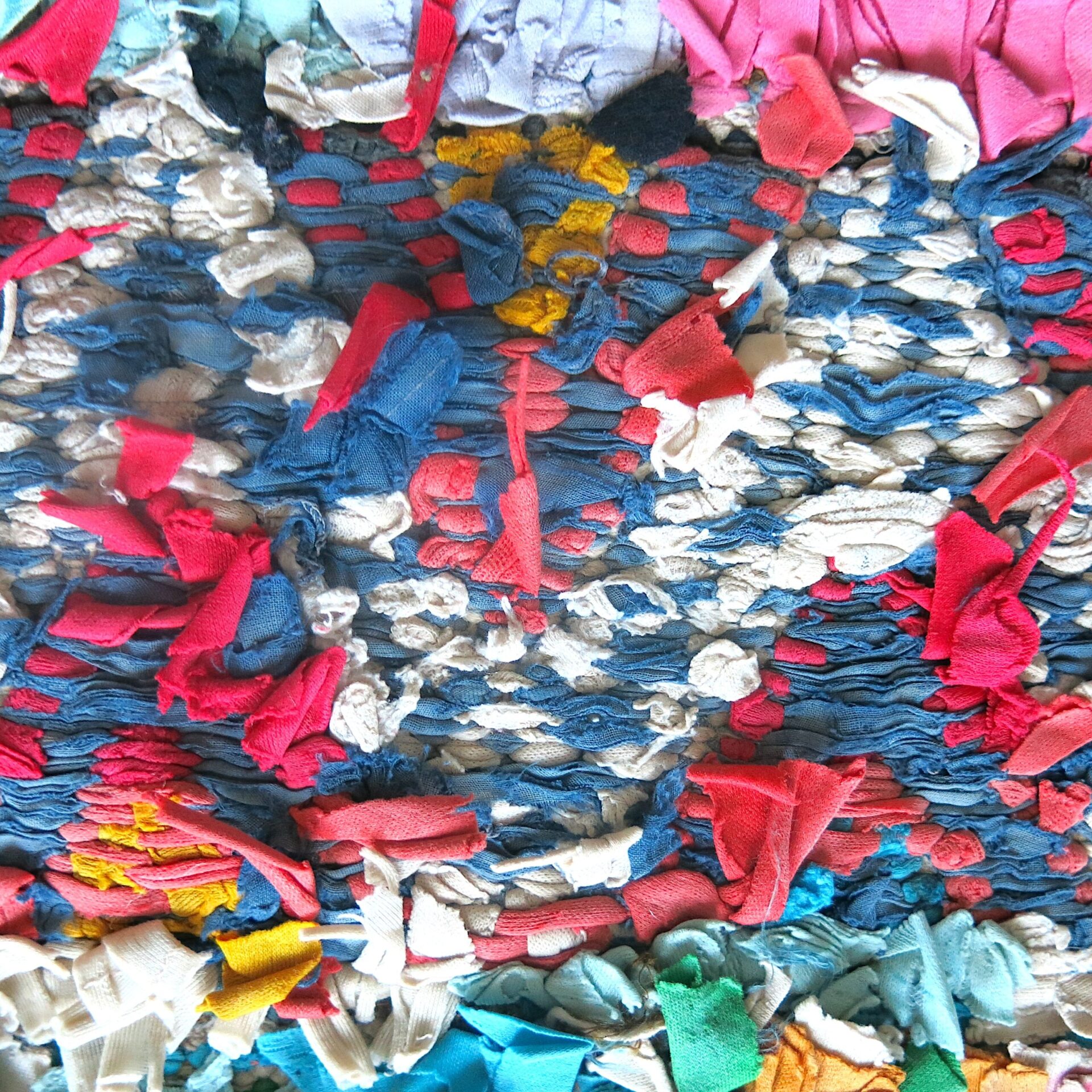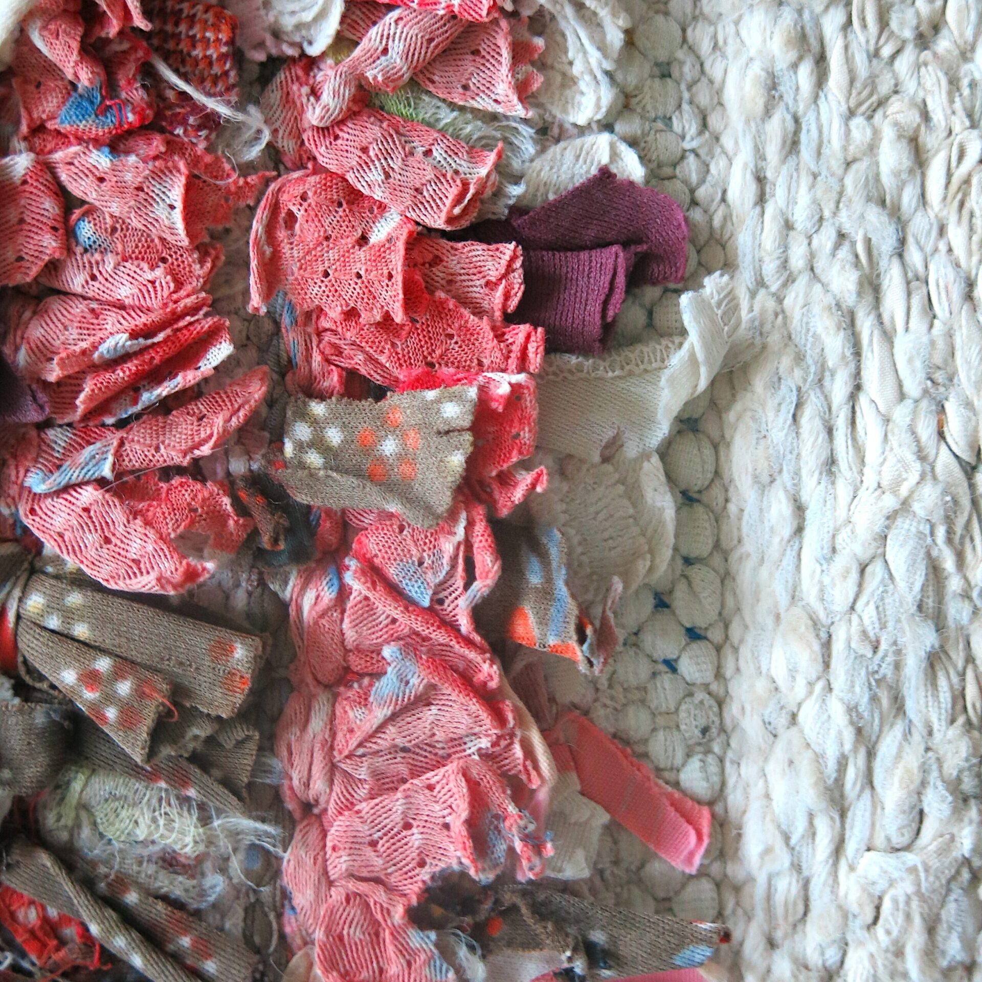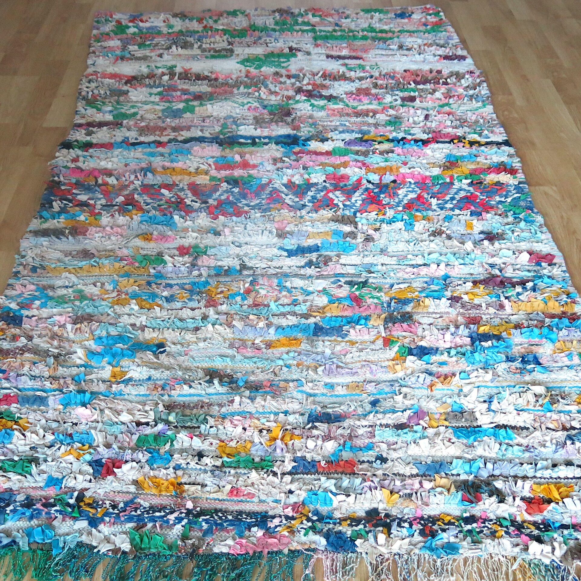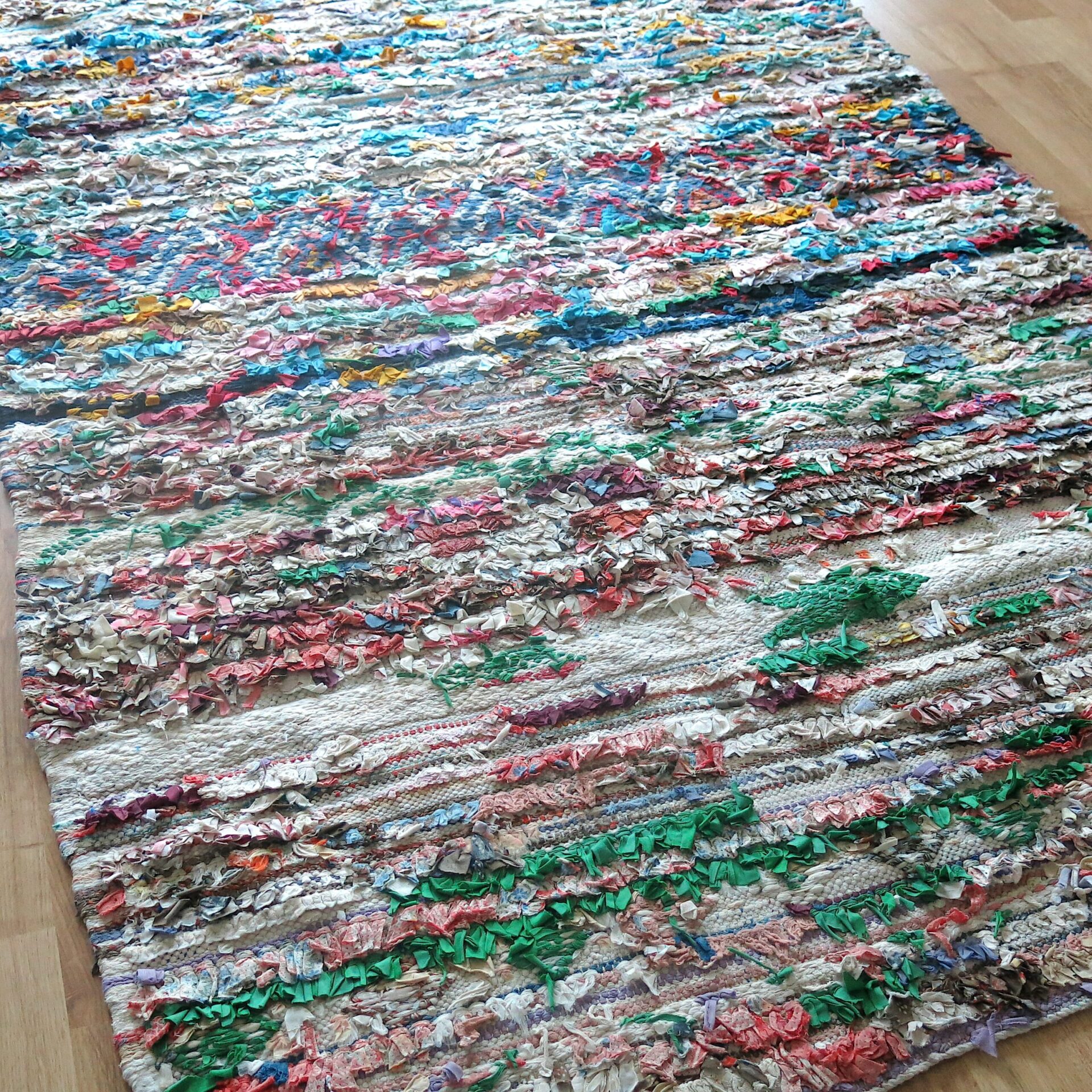 Bei ‚Boucherouite‘ handelt sich um eine Art Flickenteppich, der üblicherweise aus Stoffresten handgeknüpft wird. Dieser Teppich ist handgewoben (hambl) wobei teilweise Stoffstücke mit eingeknüpft wurden. Dies verleiht dem Teppich seine besondere Optik.