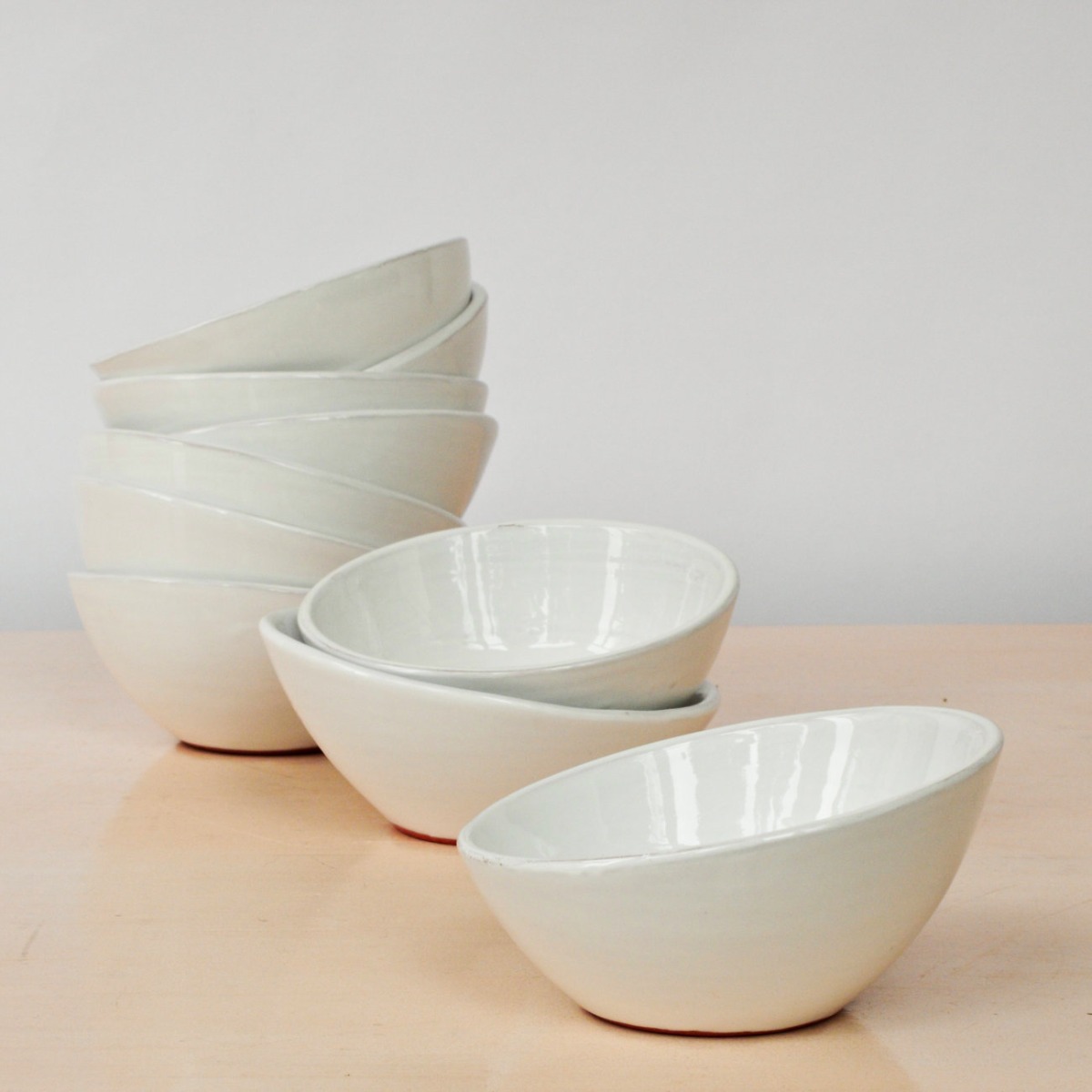 Diese Schalen mit abgeschrägtem Rand, gibt es in zwei verschiedenen Größen – S und M. Sie sind toll in Kombination zu Tafelgeschirr – z.B. auf einem Teller platziert – um darin Salate, Vorspeisen etc. zu servieren.