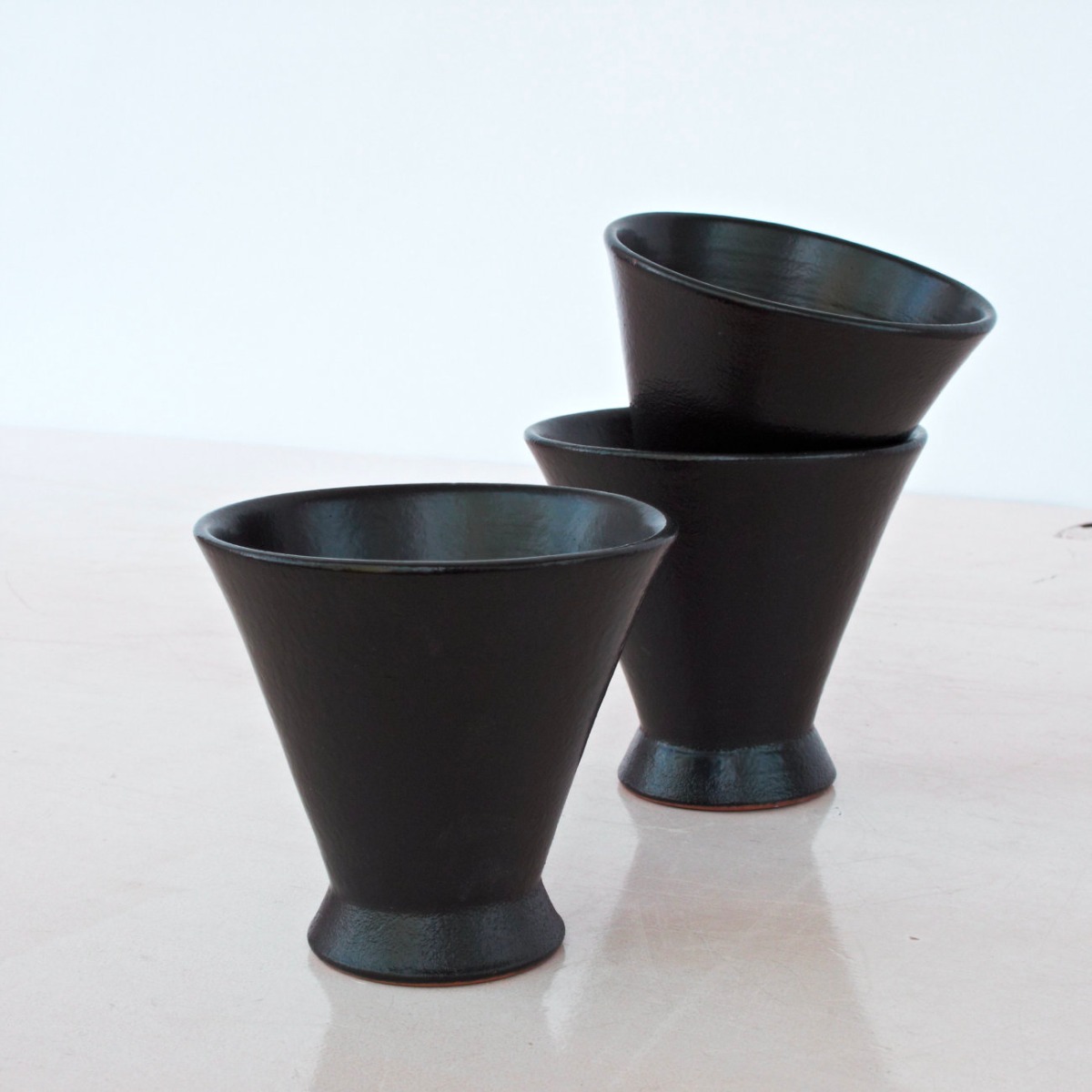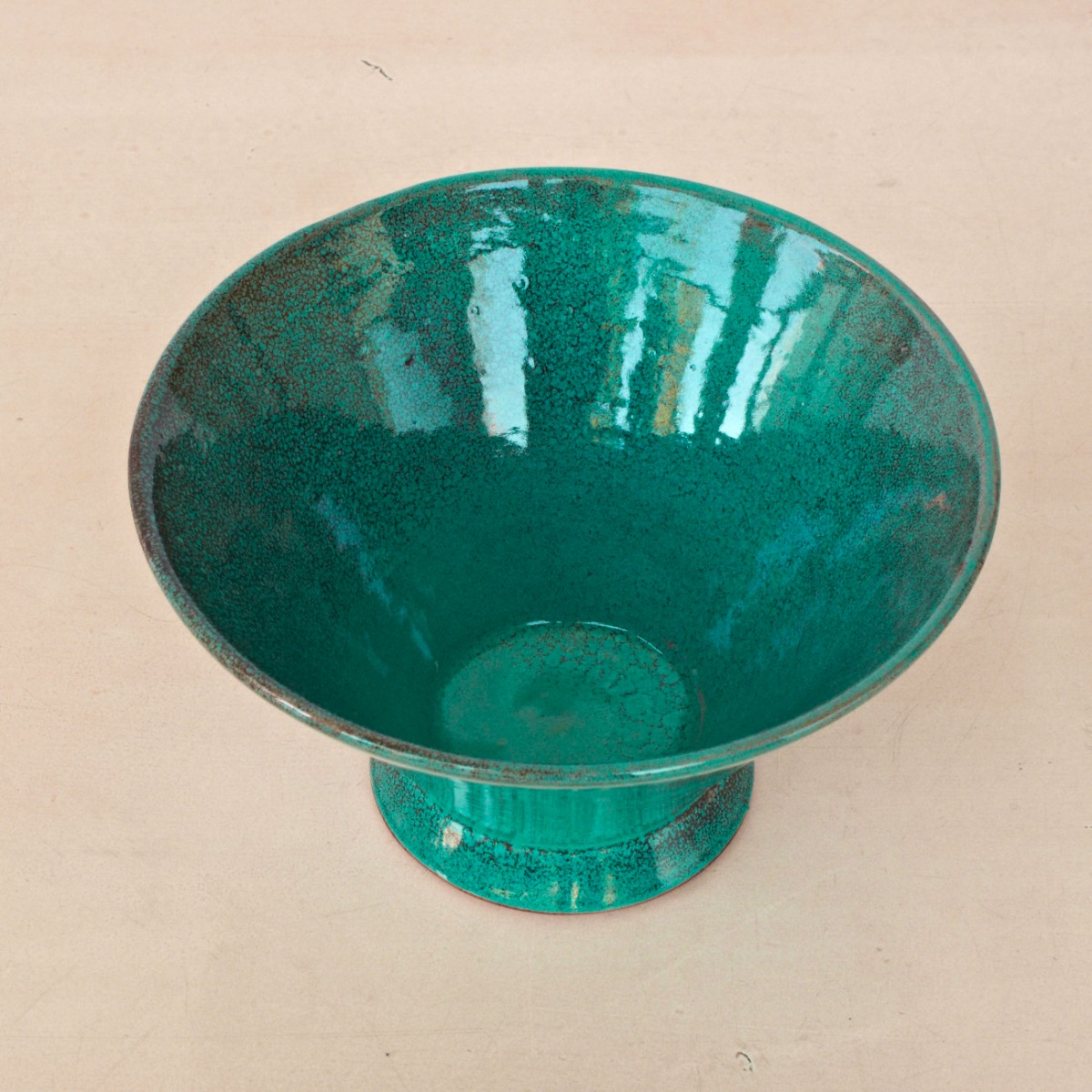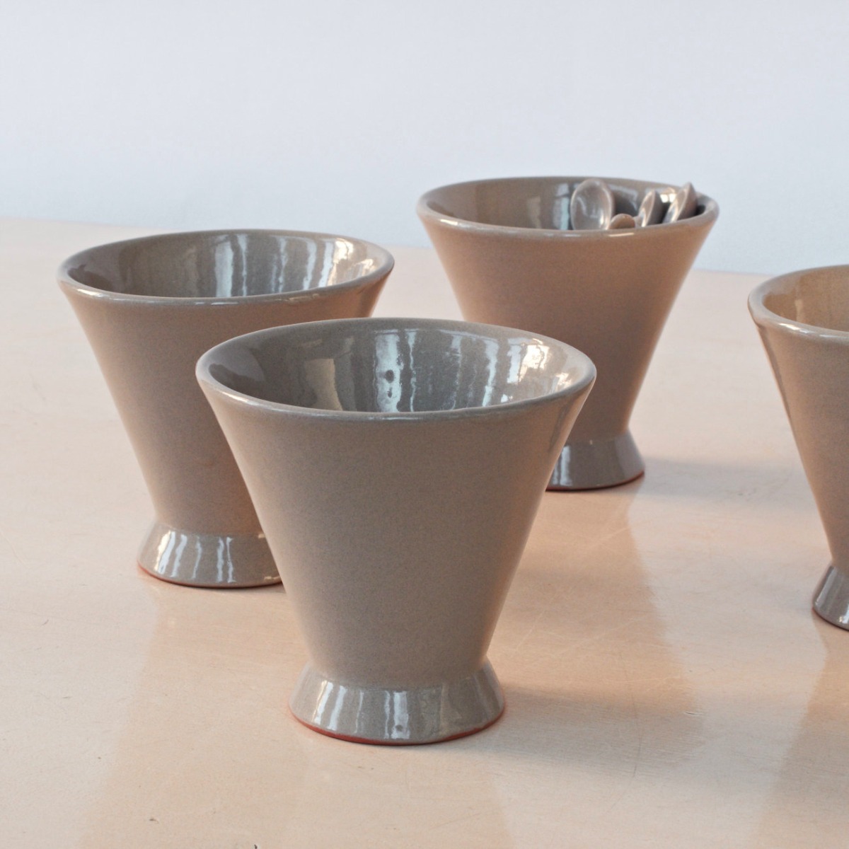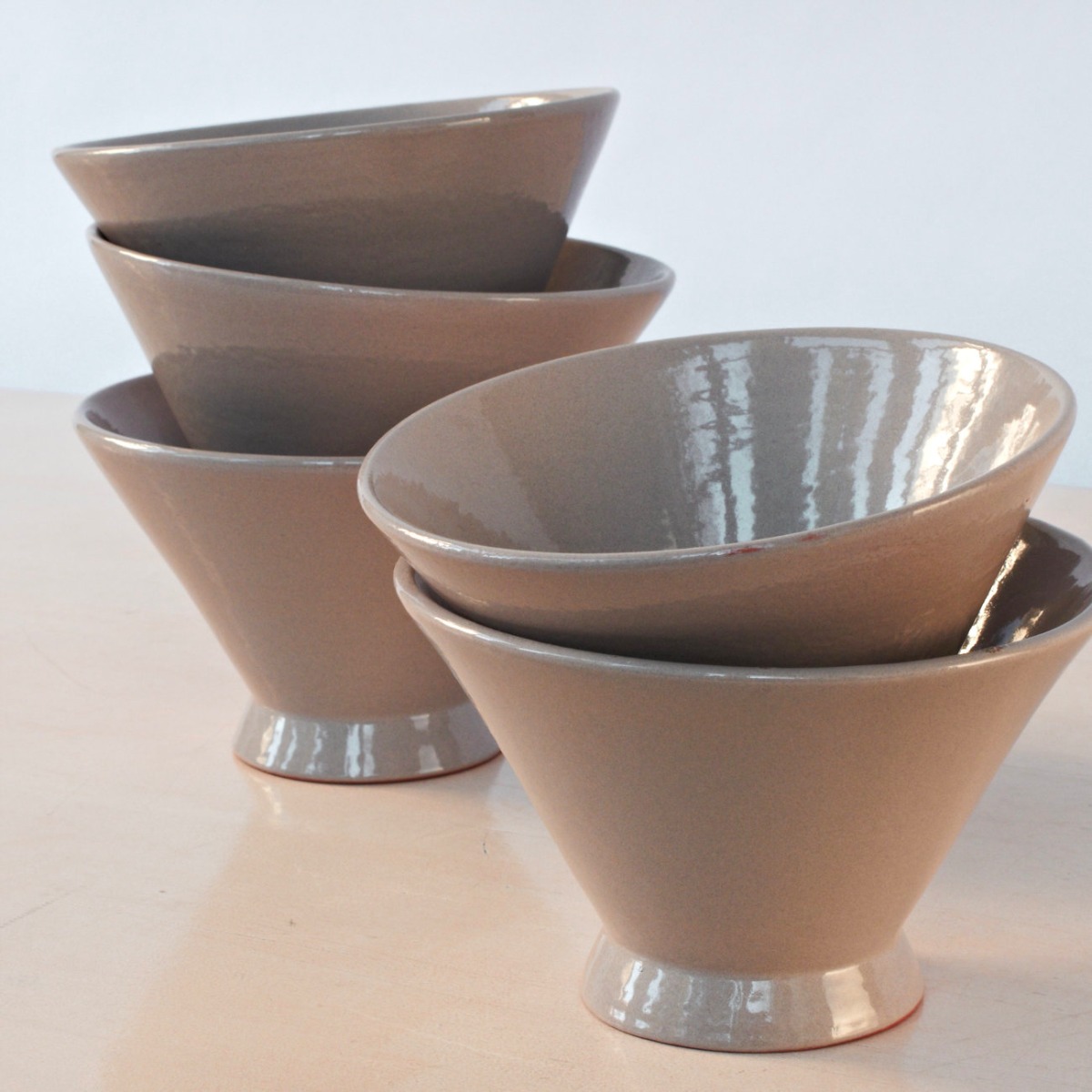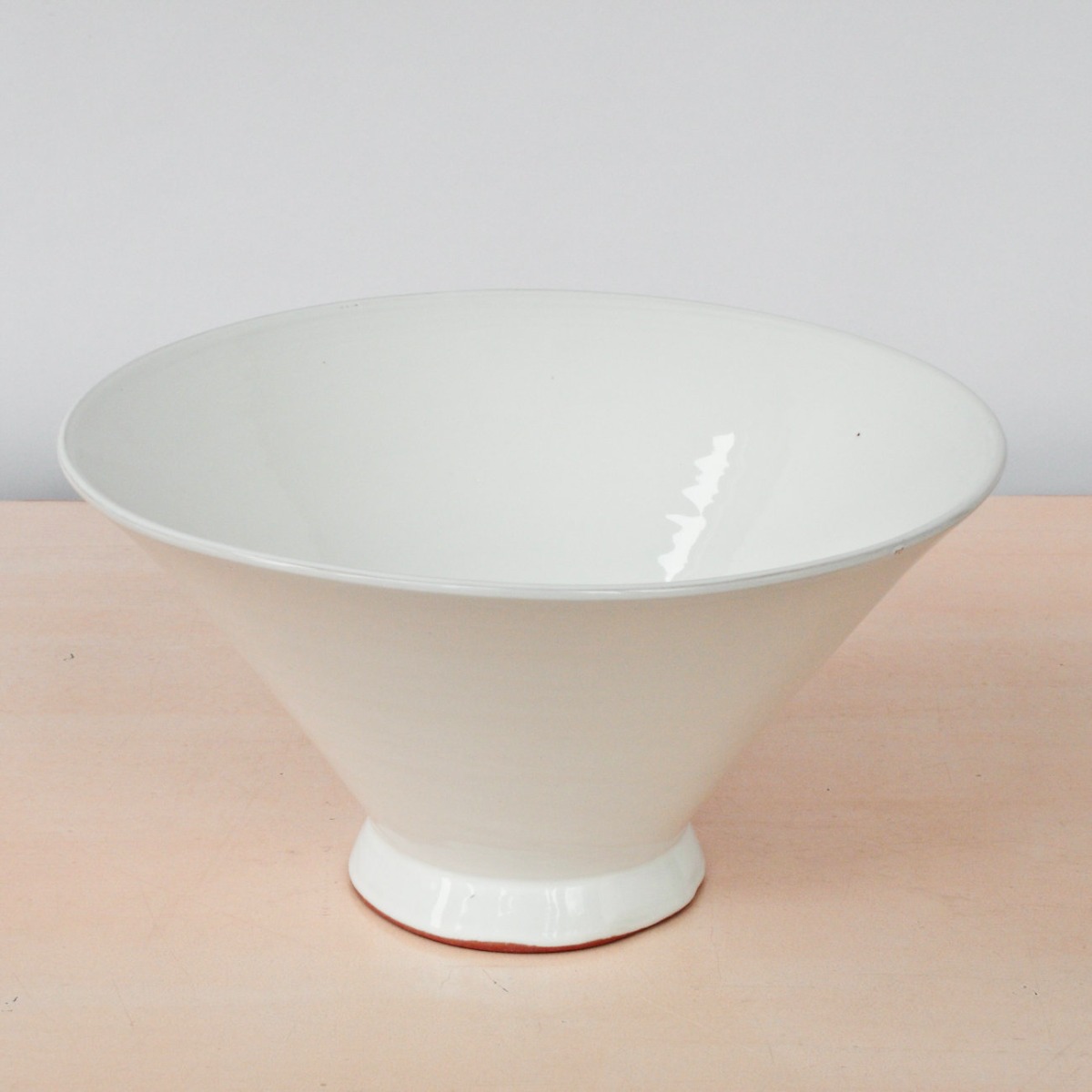 Diese Schalen habe eine besondere Form – sie haben einen Fuß und sind leicht ‚trichterförmig‘. Es gibt vier verschiedene Größen: XS, S, M und L. Größe L ist sehr schön als Salatschüssel oder Servierschale geeignet. Die kleineren können divers eingesetzt werden, z.B. als Schale für Desserts, Dips, Snacks etc..