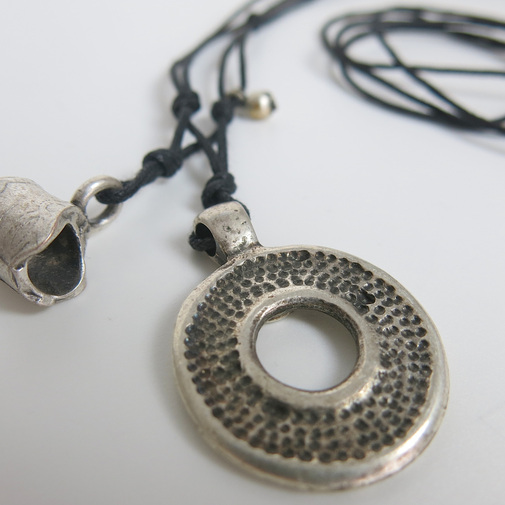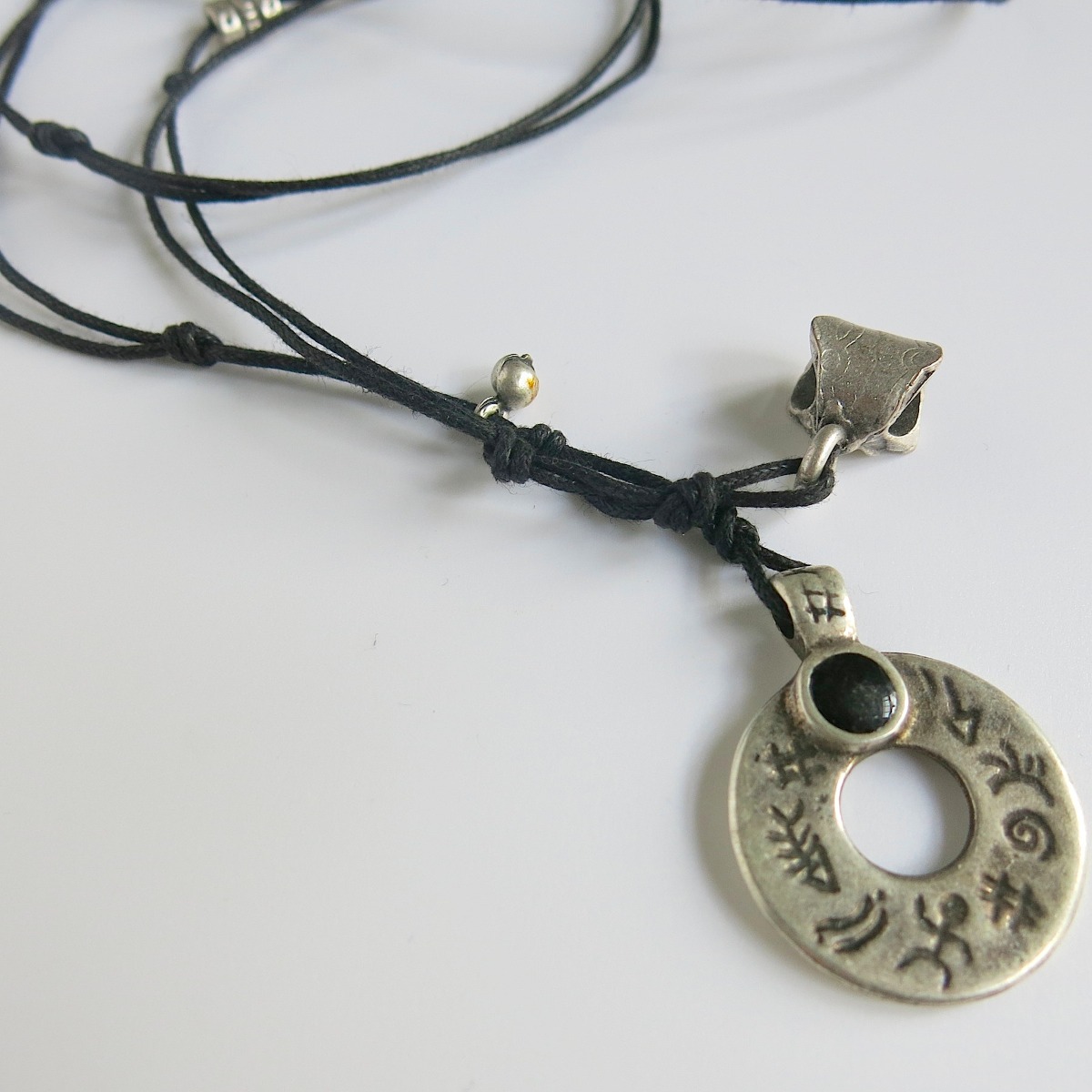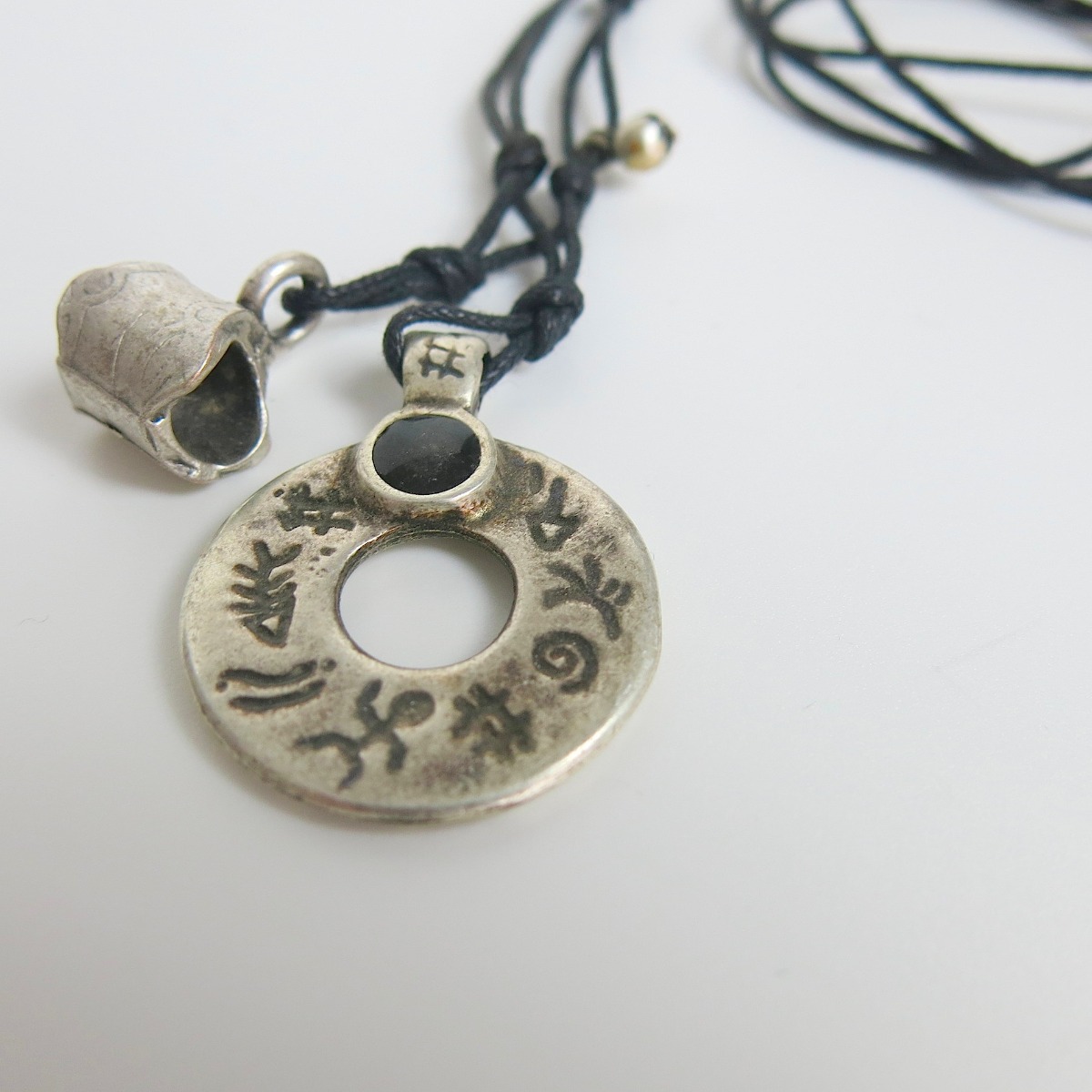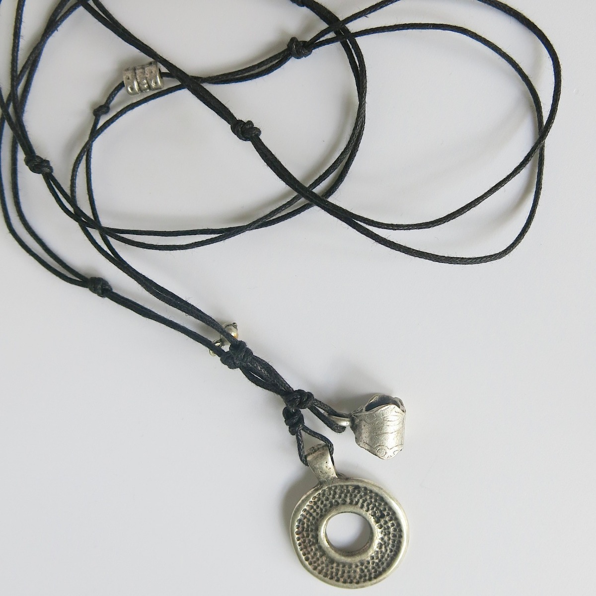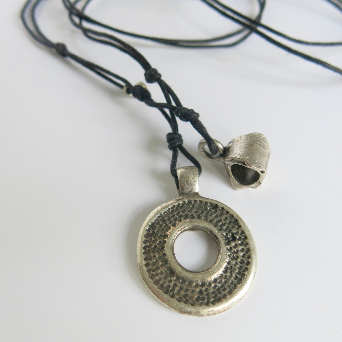 In Gruppe ‚Kette talisman N‘ bestehen die Hauptkomponenten der Kombintion aus einem versilberten ‚Berber-Anhänger‘ und einem dickeren versilbertem Art Metall-Ring.