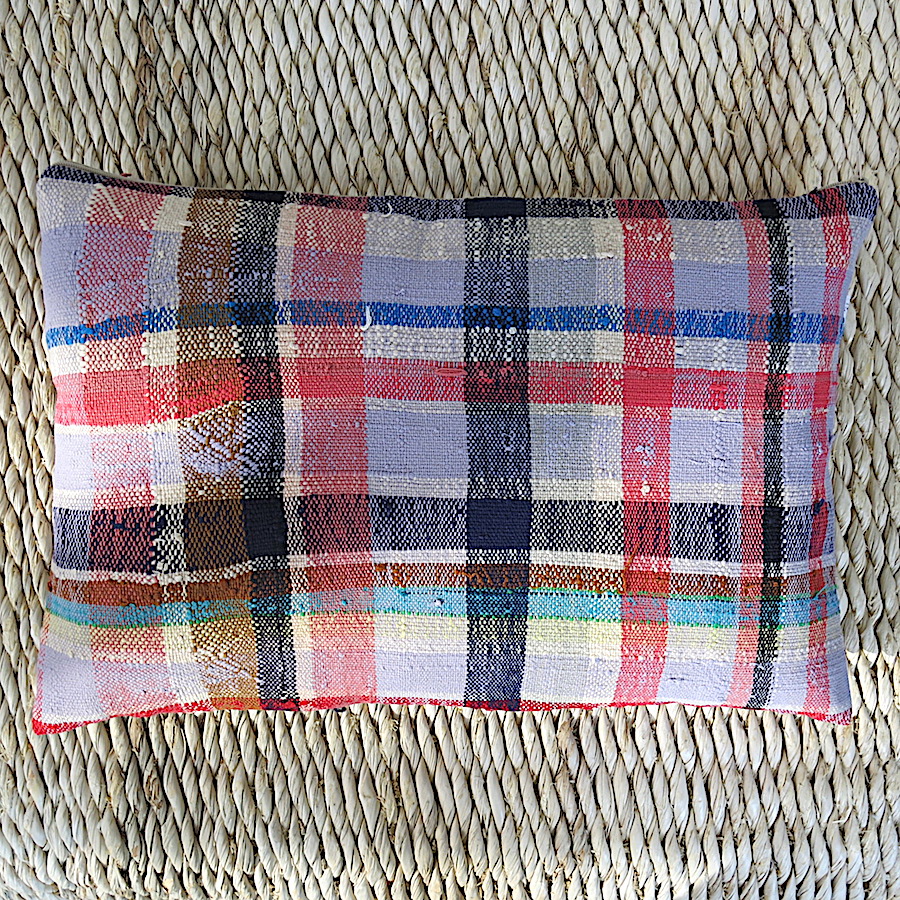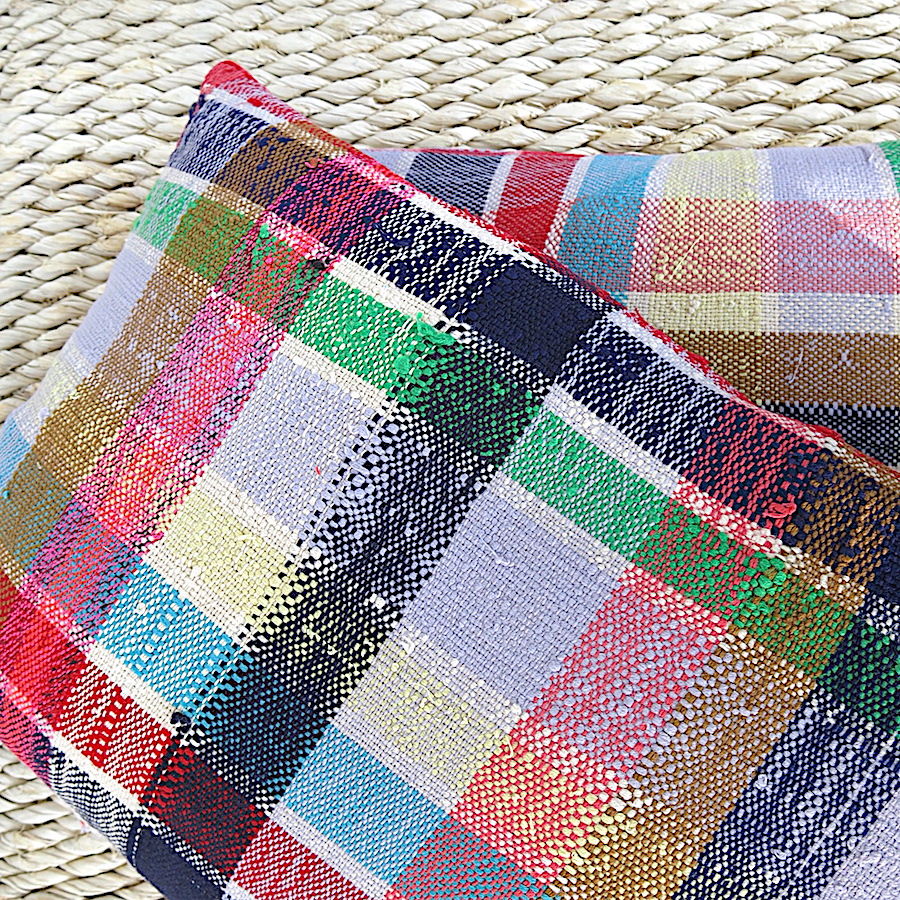 Die Kissen fertige ich aus alten handgewebten Berber Decken, die ich vor Ort in Marokko immer wieder entdecke. Meist ergibt sich aus einer Decke – je nach Größe der Kissen und der Decke – ein Set von ca. 5-8 Kissen.