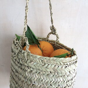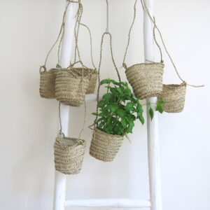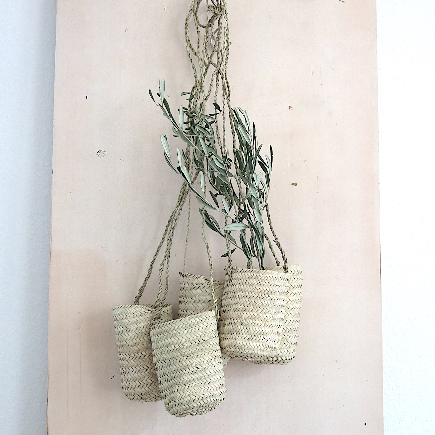 Diese kleinen Körbe lasse ich bei einem ‚artisan‘ anfertigen, der mit einer Frauenkooperative nahe Marrakechs arbeitet: Das Material – das Palmblatt – stammt von der in Marokko beheimateten ‚Doumpalme‘.