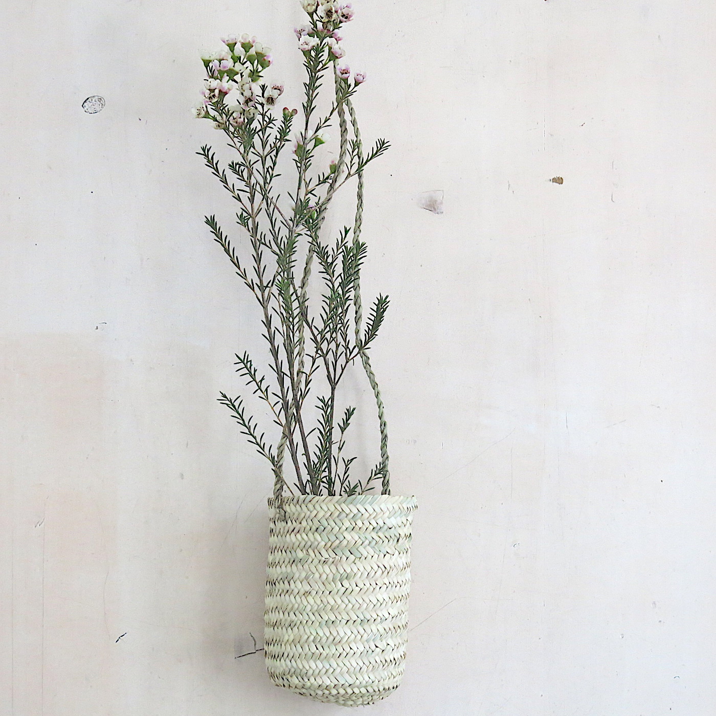 Diesen kleinen Korb in länglicher, schmaler Form mit Aufhängung kann man in verschiedenen Varianten verwenden Mit z.B. Zweigen, Blumen oder eine Pflanze gefüllt und an einer Wand aufgehängt ist er ein kleines ‚Deko-highlight‘. Zu einem lässigen, funktionalen Korb wird er zur Aufbewahrung einer Flasche (z.B. Wein-/ Wasserflasche) – ideal und platzsparend im Sommer auf der Terrasse!