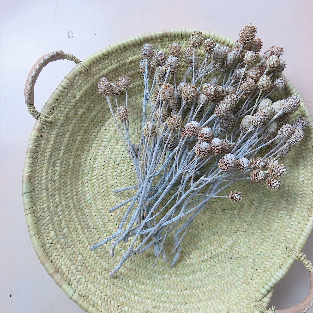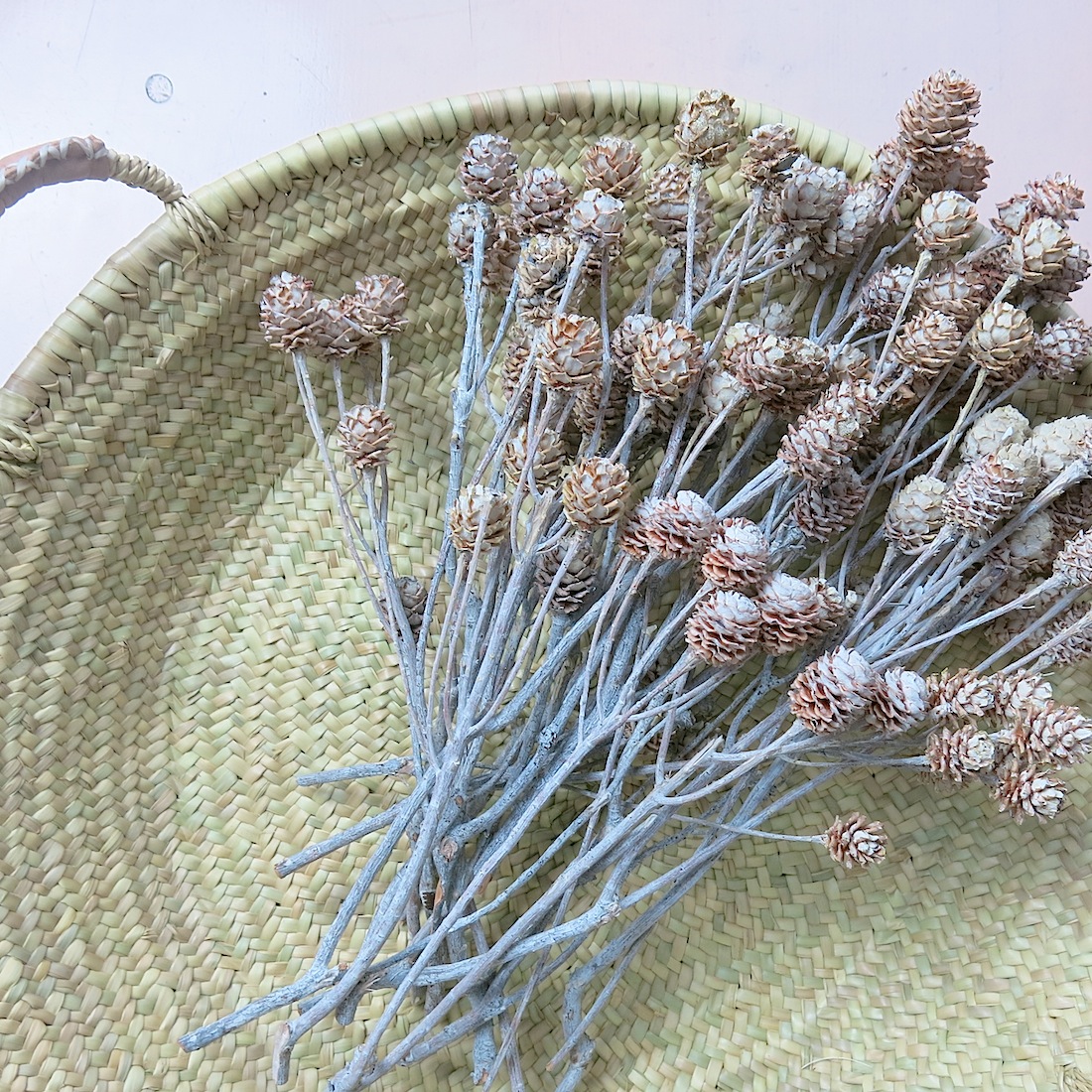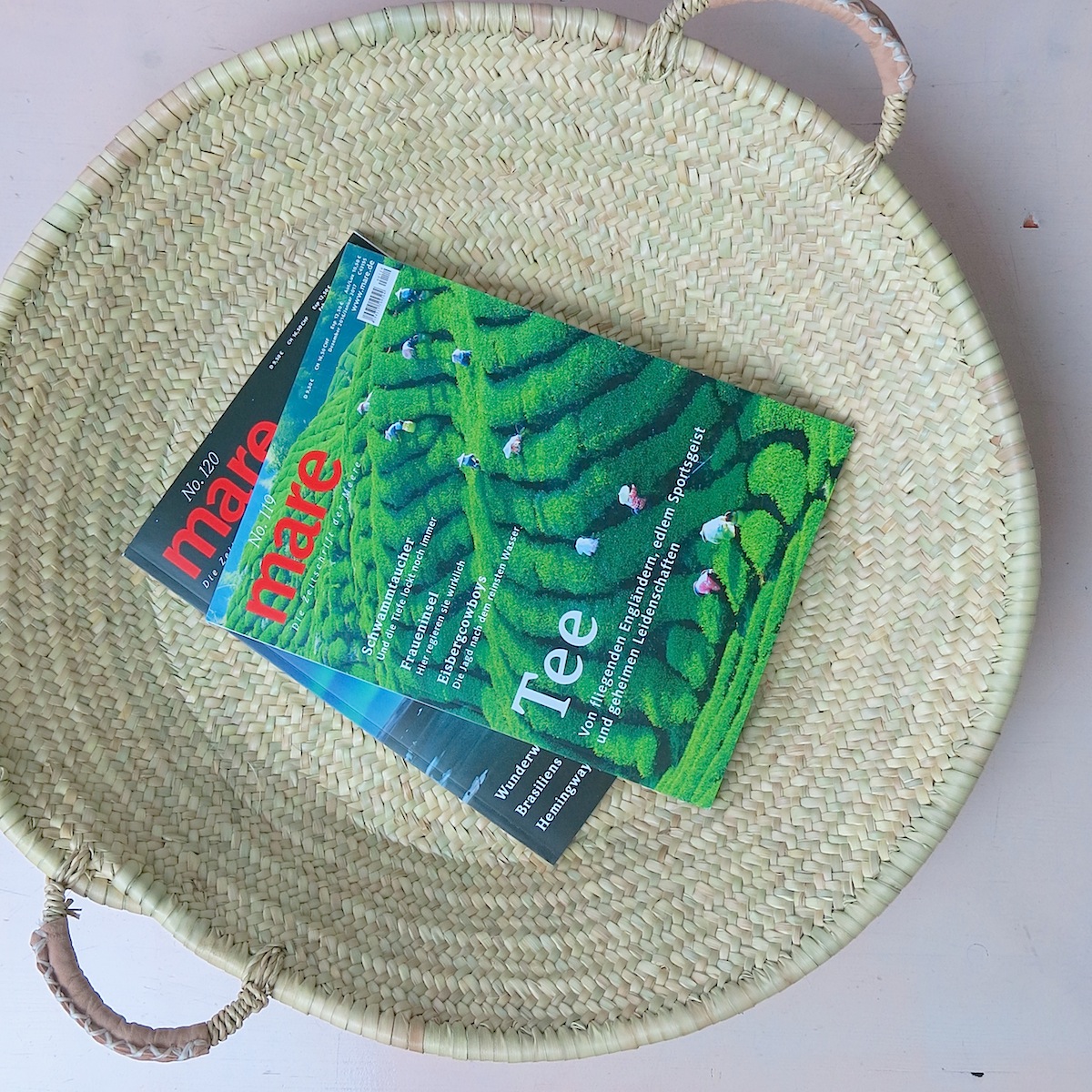 Die typischen Körbe lasse ich bei einem ‚artisan‘ anfertigen, der mit einer Frauenkooperative nahe Marrakechs arbeitet: Das Material – das Palmblatt – stammt von der in Marokko beheimateten ‚Doumpalme‘.