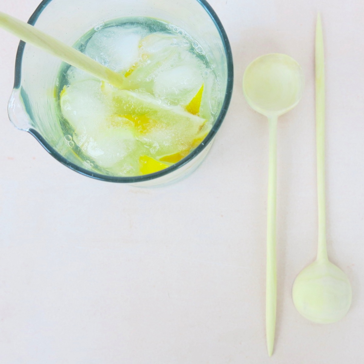 Nach langer Suche in einem kleinen Dorf vor Marrakech gefunden: Den richtigen Handwerker, der mir meine besonderen Zitronenholz Produkte in liebevoller Handarbeit fertigt. Diesen Holzlöffel mit etwas längerem Griff habe ich speziell als Art ‚Rührlöffel‘ für die Glaskaraffe aus mundgeblasenem Glas entwickelt. So lassen sich in der Karaffe herrliche frische Sommerbowlen oder andere Mix-Getränke einfach verrühren. Das recycelte mundgeblasene Glas und das Zitronenholz sind in Farbigkeit und Material eine wunderschöne Kombination.