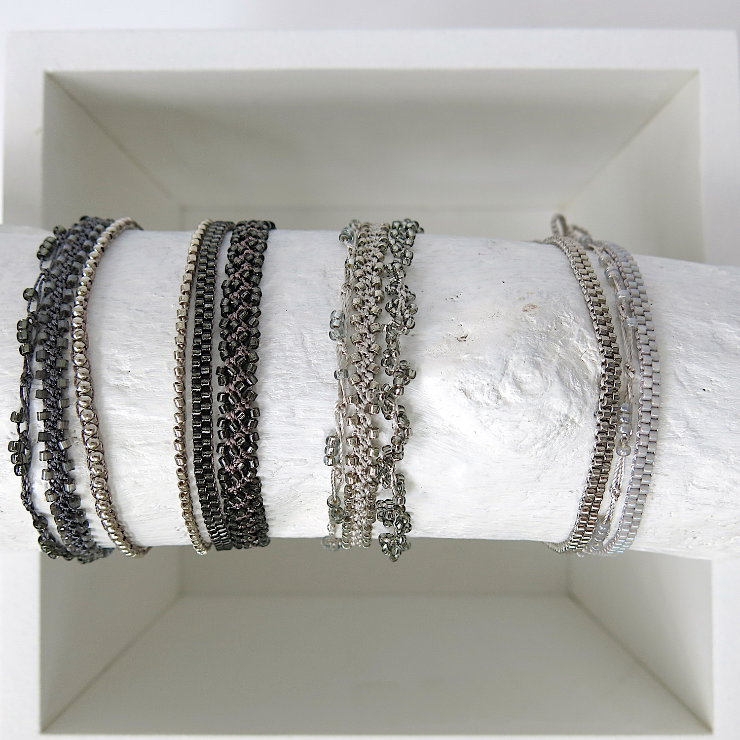 Die Accessoires wirken auf den ersten Blick eher ’schlicht‘ – beim näheren Hinschauen erkennt man die filigrane und aufwendige Handarbeit. Trotzdem soll ‚der Look‘ eher schlicht und dezent sein. Ein Accessoire, welches man täglich tragen kann und was sich leicht kombinieren lässt. Die Armbänder aus der Kollektion lassen sich untereinander wundervoll zusammen stellen, aber auch in Kombination mit anderem Schmuck harmonisieren sie sehr schön.