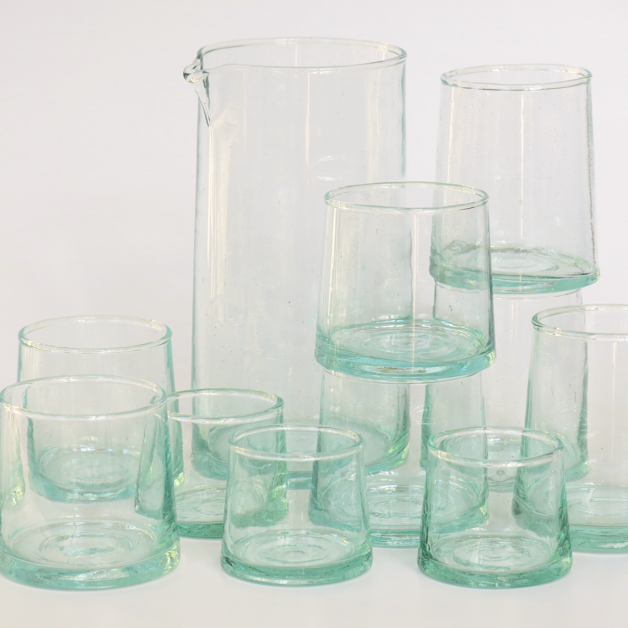 Diese mundgeblasene recycelte Glasware kommt aus einer Manufaktur in Casablanca: Der Farbton des recycelten Glases macht Lust auf Sommer!