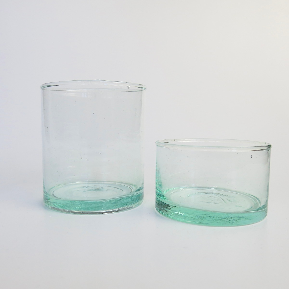 Die mundgeblasenen Gläser gibt es in drei verschiedenen Größen S (DM 8cm x H 5cm – FM ca.125ml), M (DM 8cm x H 9cm – FM ca. 250ml) und L (DM 8cm x H 13cm – FM ca. 500ml).