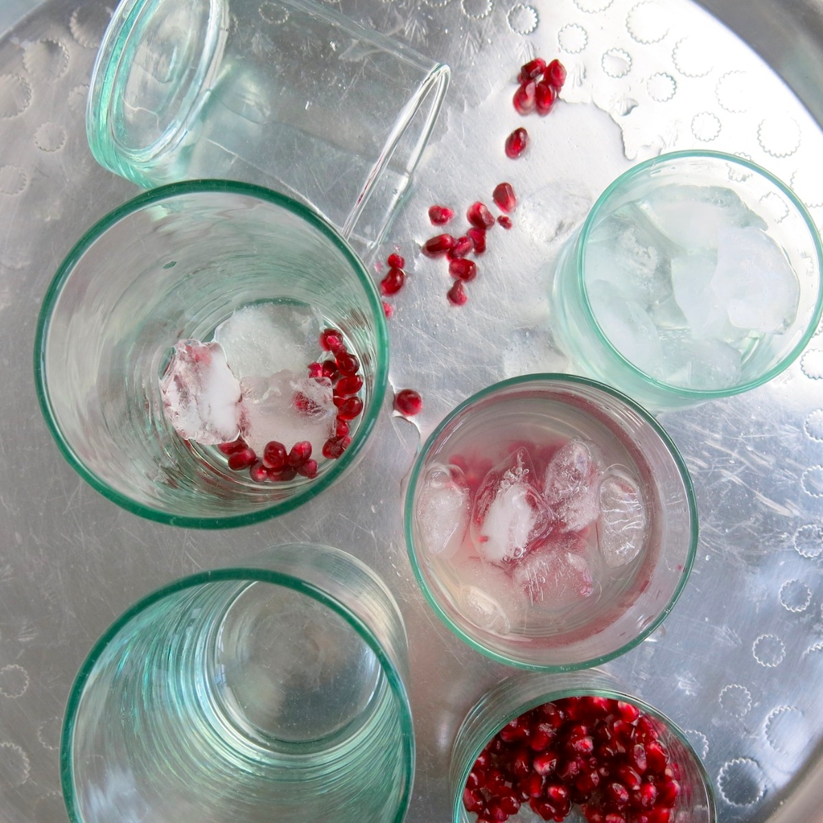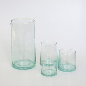 Diese mundgeblasene recycelte Glasware kommt aus einer Manufaktur in Casablanca: Der Farbton des recycelten Glases macht Lust auf Sommer!