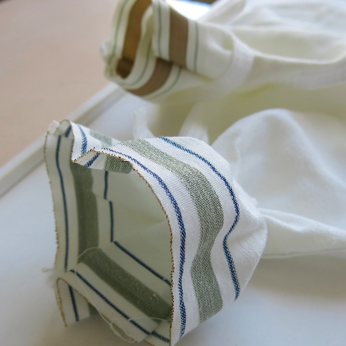 Es gibt drei verschiedene Streifenfarben: bordeaux, oliv und khaki.