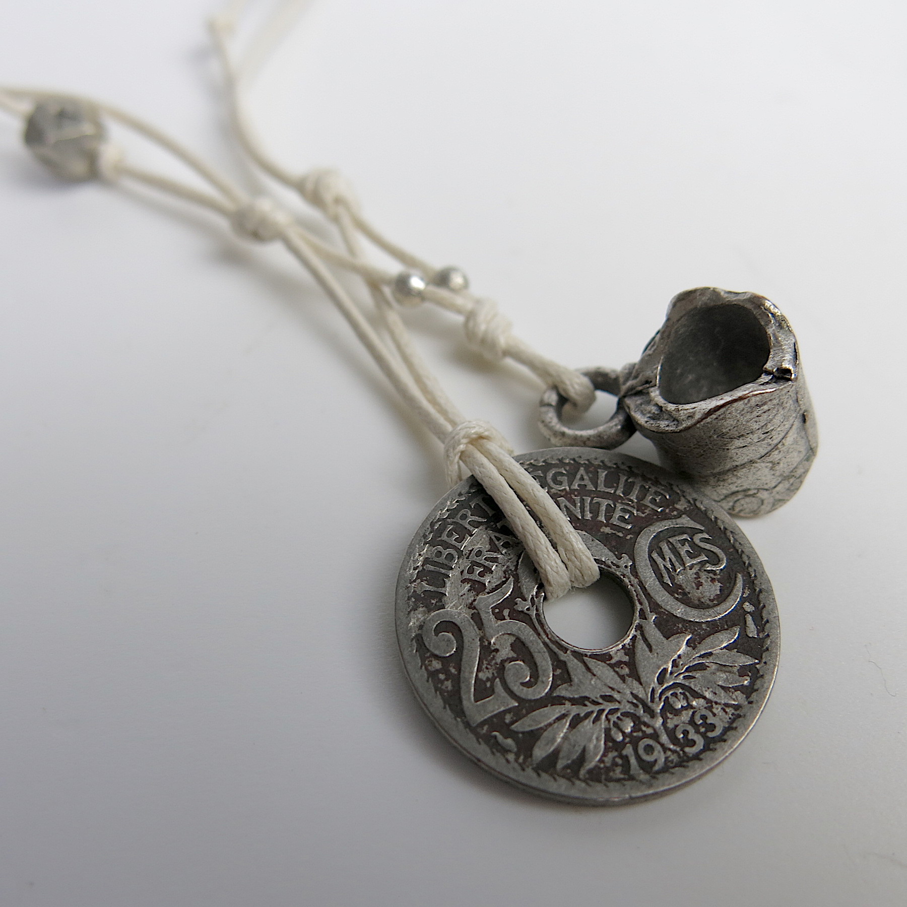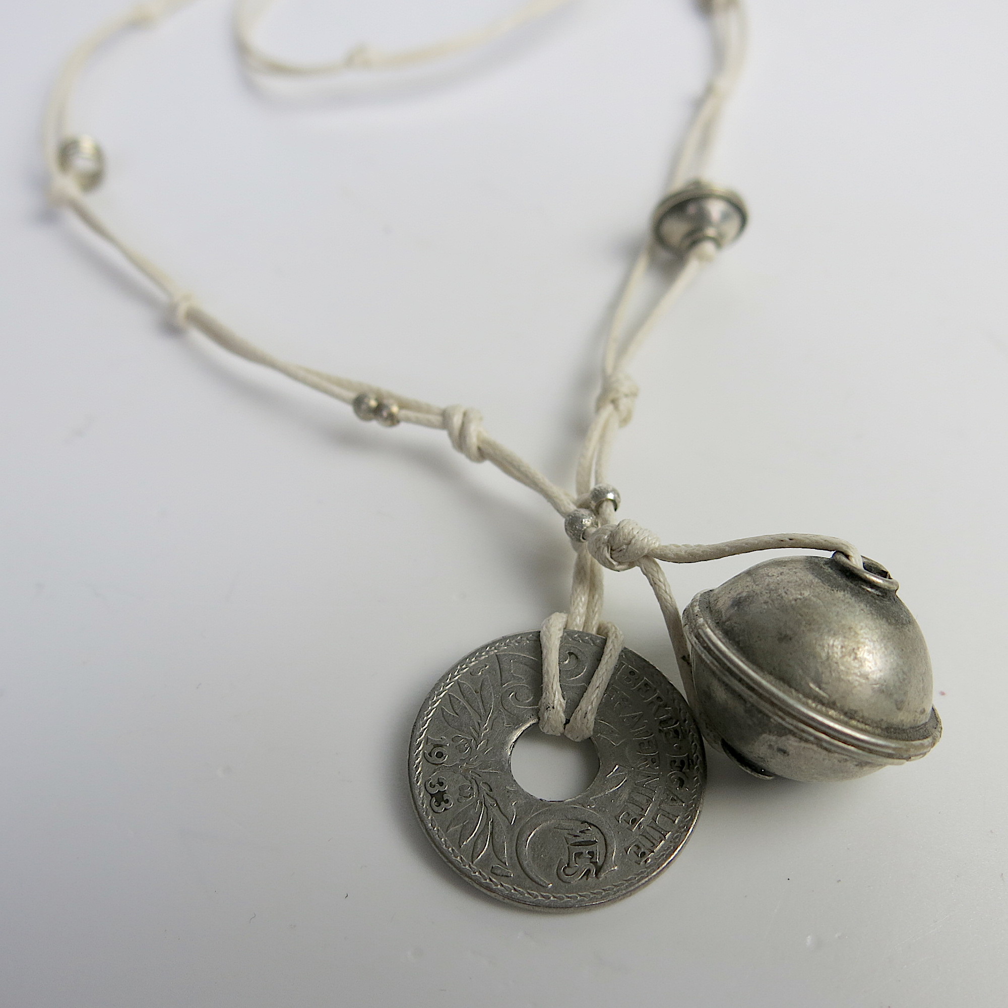 Unikat-Kette mit alter Münze und Berber Silberperlen