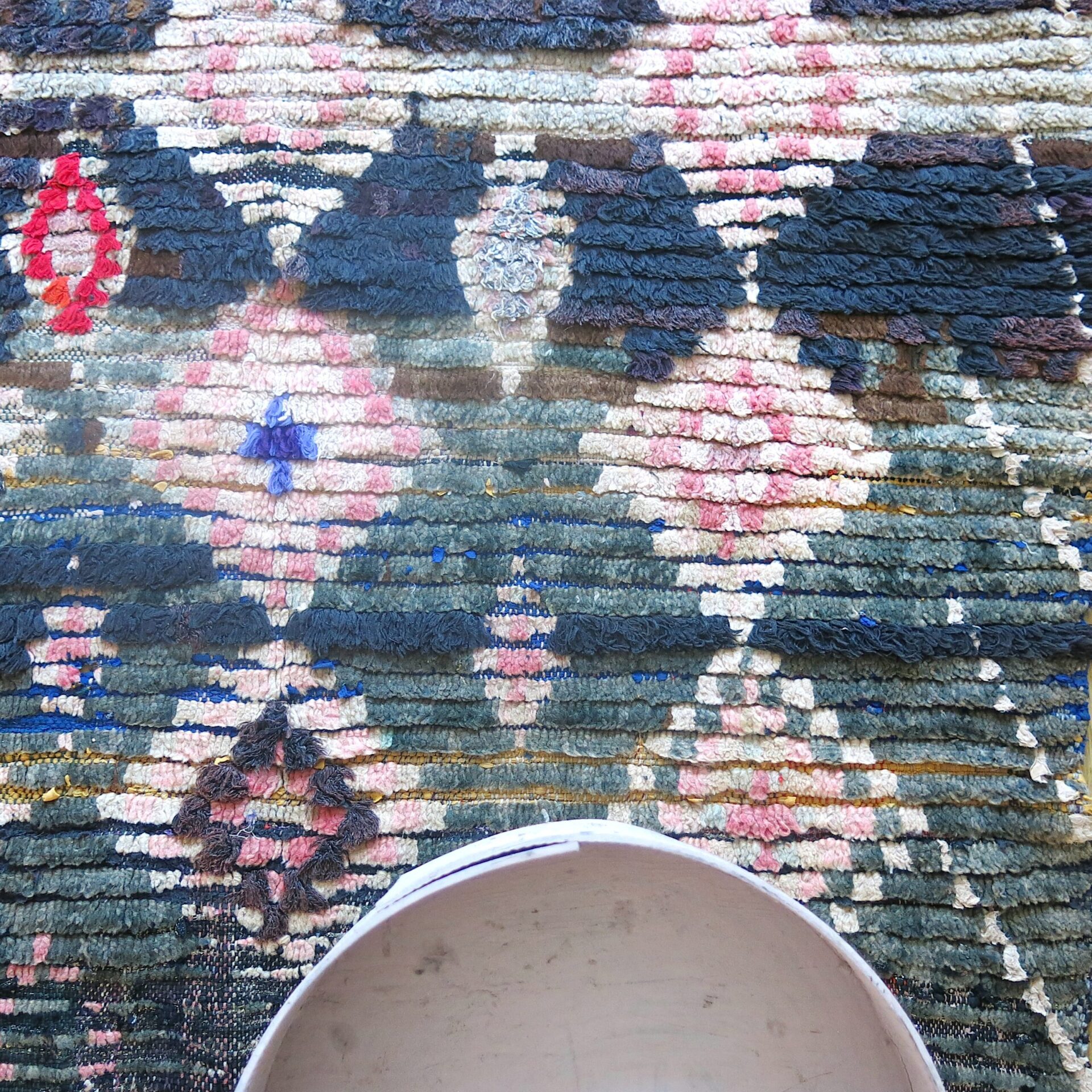 Boucherouite sind meist sehr farbige Teppiche. Durch die recycelte Baumwolle/ Textilreste erhält er aber eine leichte ‚faded optic‘, wie ein Aquarell. Mit diesen Teppichen können Sie in Ihrem Interior einen aussergewöhnlichen Akzent setzen – einen ‚lässigen bohemian look‘!