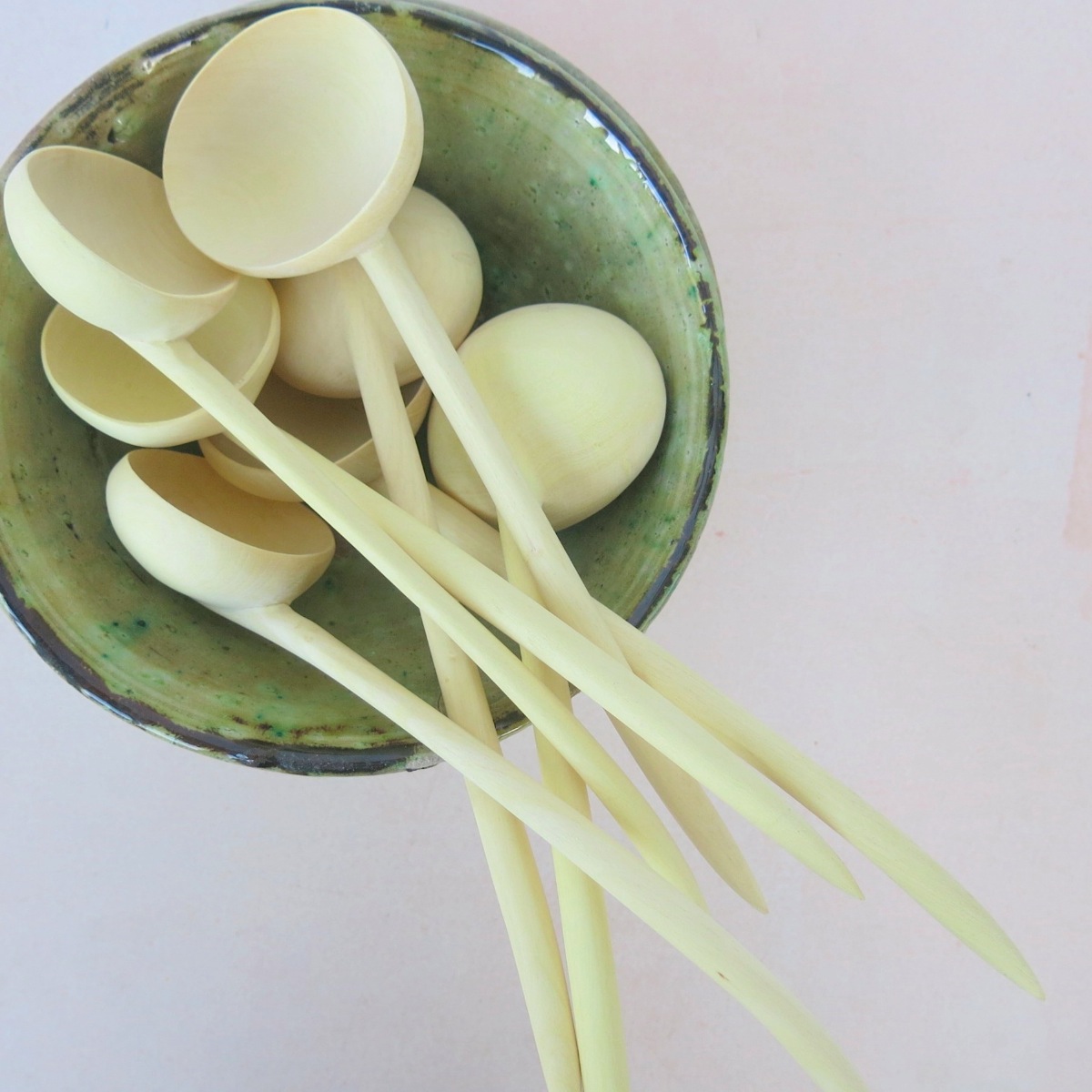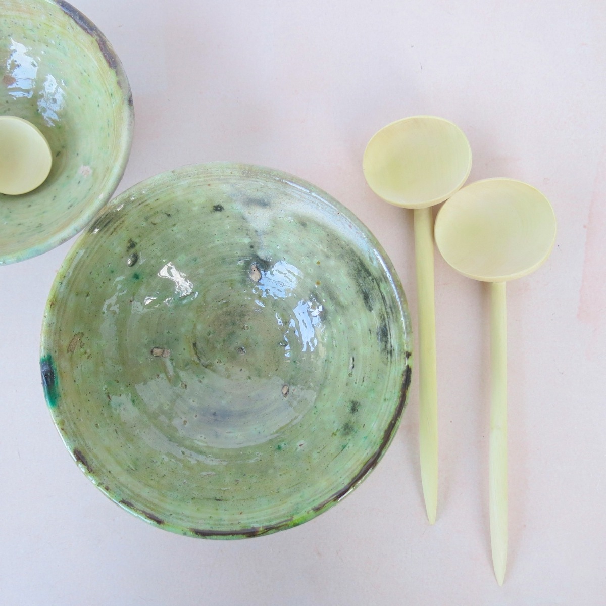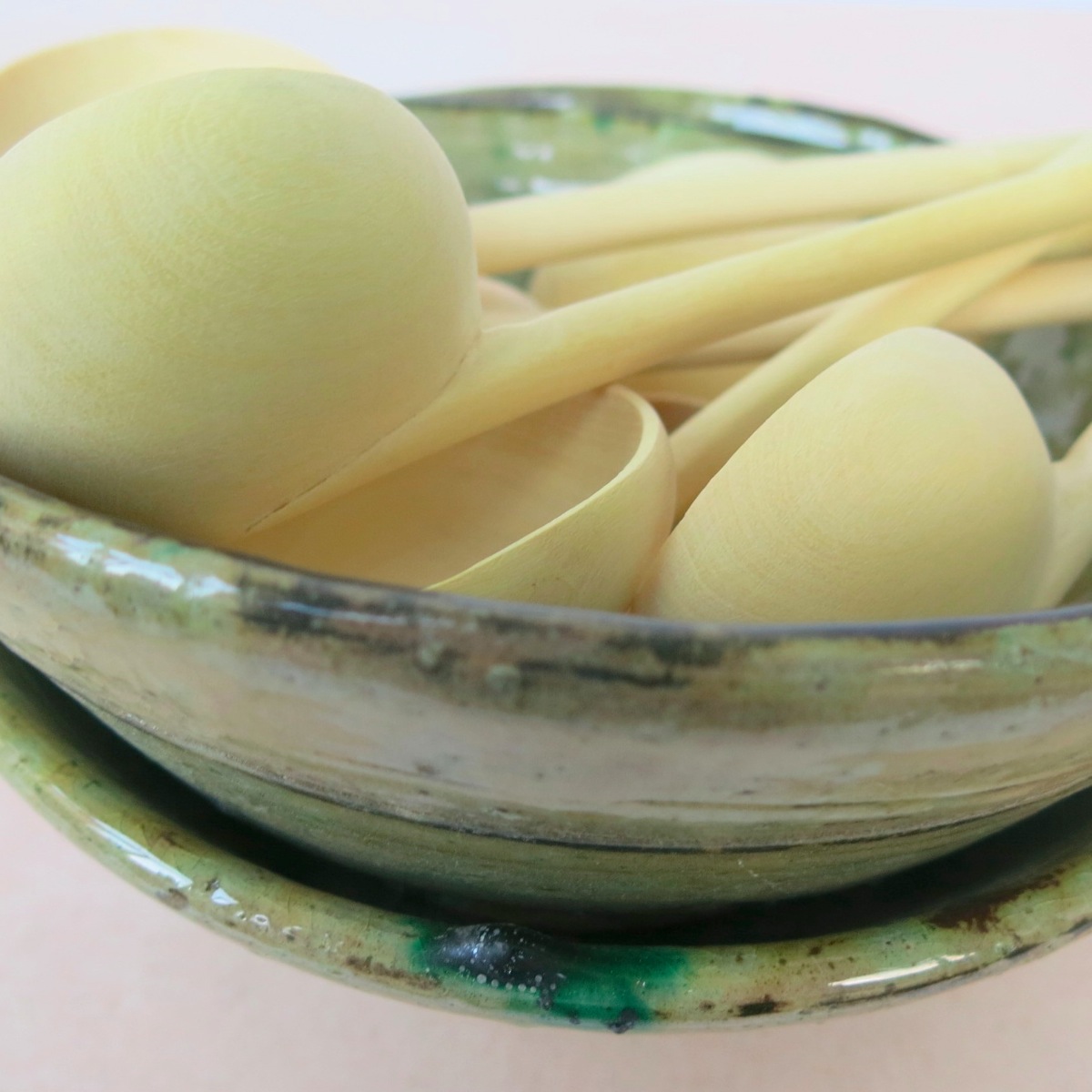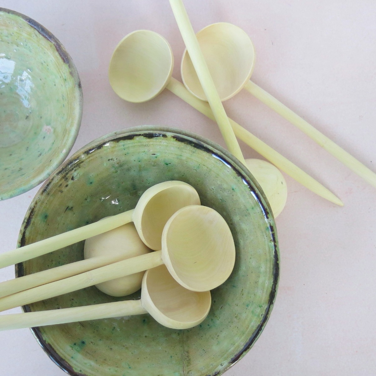 Nach langer Suche in einem kleinen Dorf vor Marrakech gefunden: Den richtigen Handwerker, der mir meine besonderen Zitronenholz Produkte in liebevoller Handarbeit fertigt. Löffel ‚Beldi‘ ist der ganz traditionelle Zitronenholz Löffel in Marokko mit einer runden ‚Kopf-Form‘. Diese Form wird meist als Esslöffel – typisch für die marokkanische Suppen Spezialität ‚Harira‘ – verwendet. Ich gebrauche diese Löffelform auch häufig als Servierlöffel für feine Salate oder zum Servieren von Reis, Couscous etc. Das Besondere an diesem ‚Beldi‘ Löffel ist, dass er einen leicht geschwungenen Griff hat. Da Zitronenholz ein sehr dichtes, hartes Holz ist, lässt es sich als Esslöffel wunderbar verwenden. Die Oberfläche ist ganz samtig glatt.