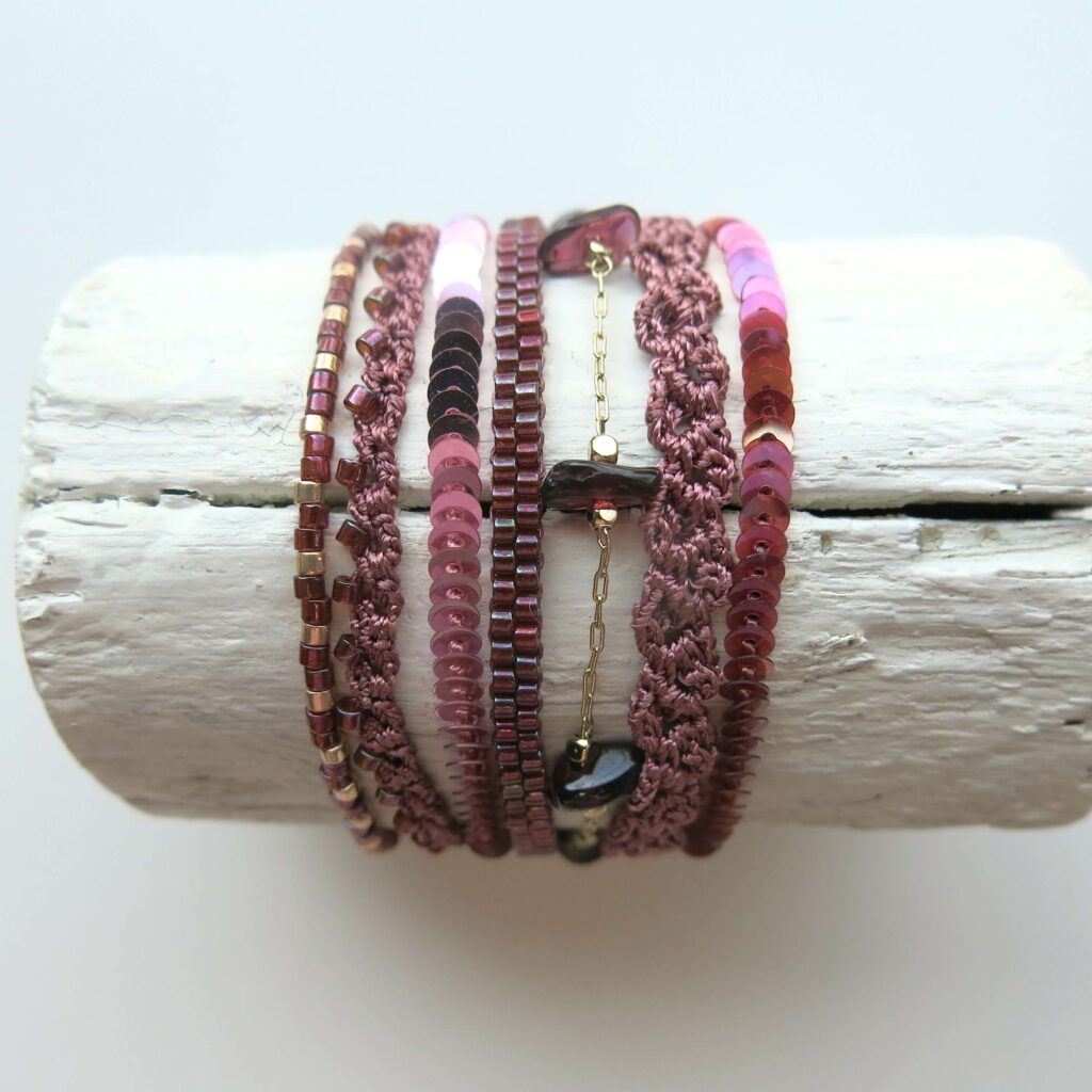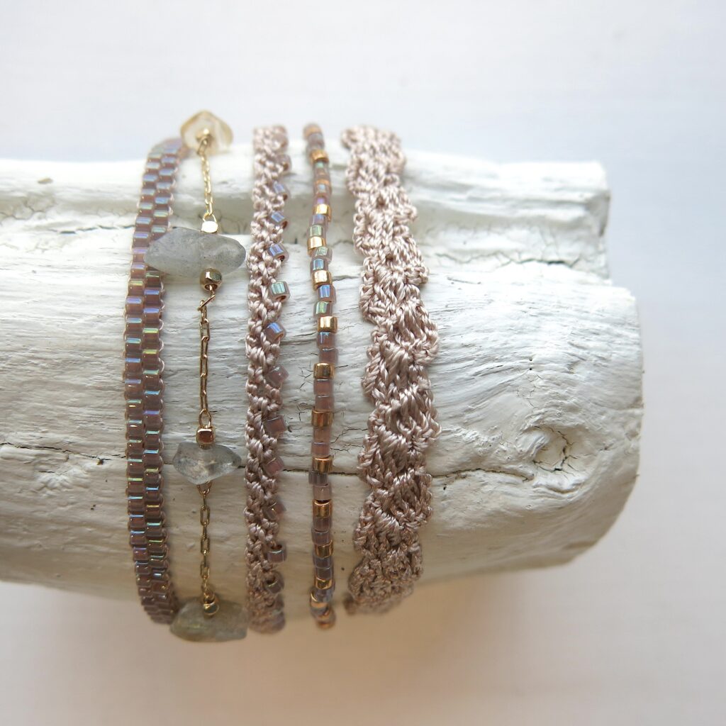 Häkel Armband mit verschiedenen Edelsteinen & Vermeil Perlen