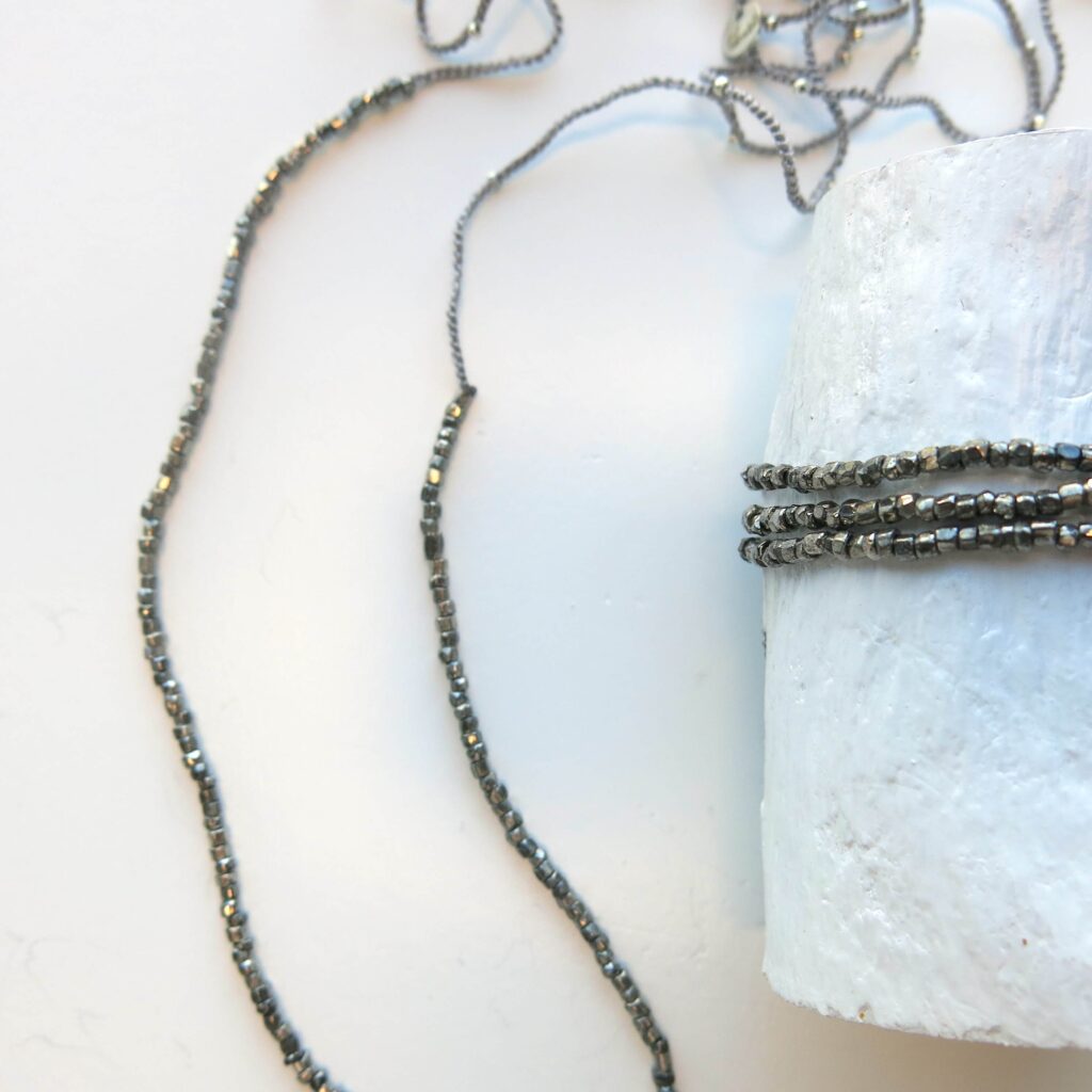 Kette aus ‚cut beads‘ in Gold, Peach und Silber