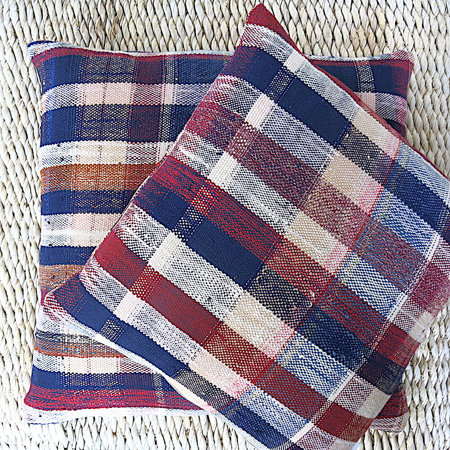 Kissen bunt kariert – aus vintage Berberdecke
